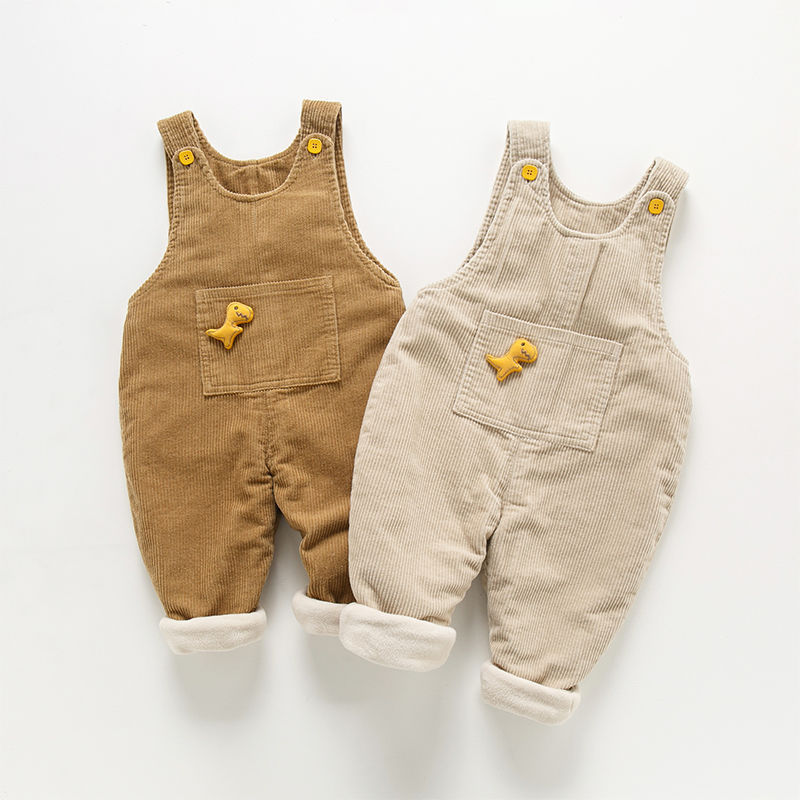 宝宝背带裤加绒加厚秋冬季一岁男小童恐龙连体长棉裤婴儿裤子冬装
