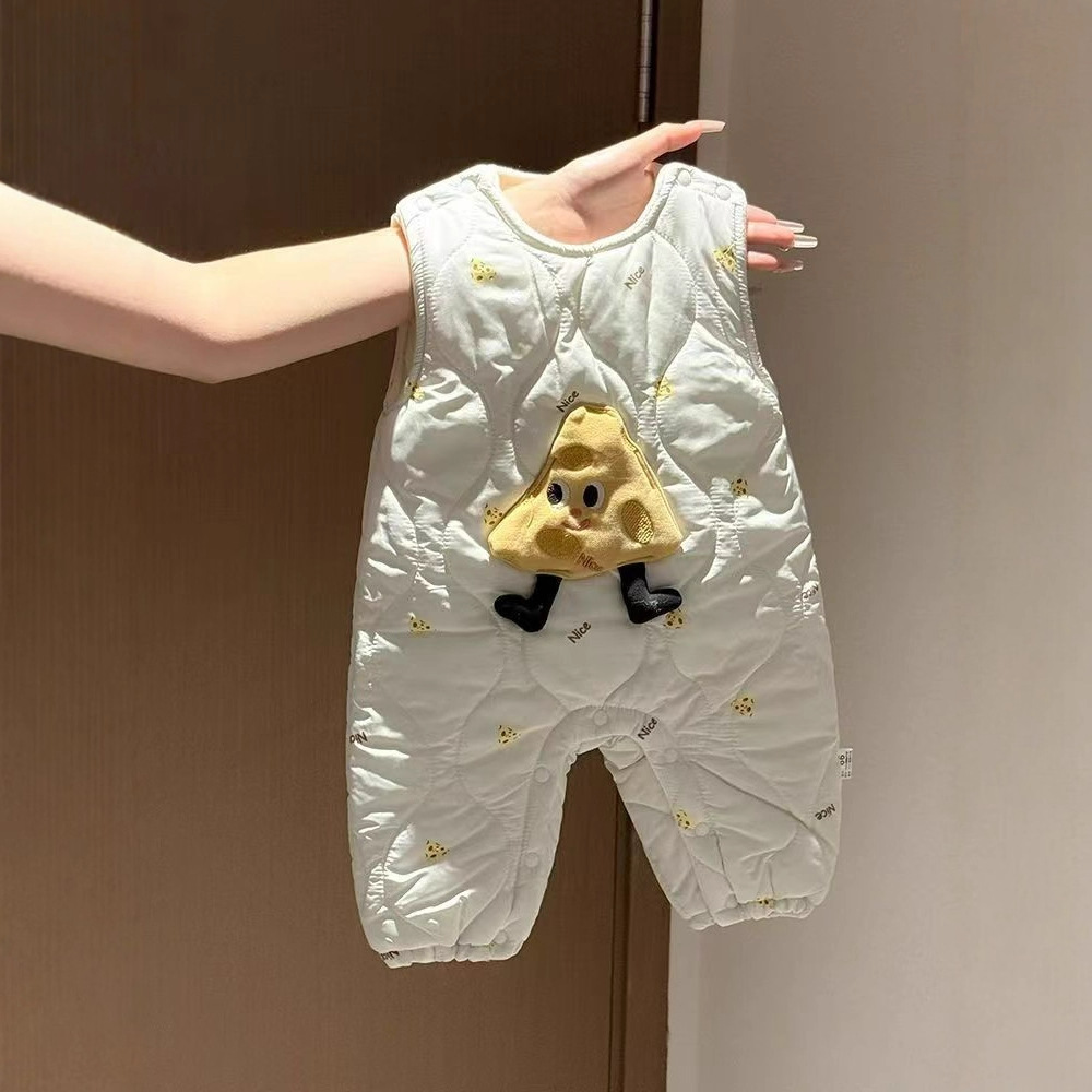 婴幼儿秋冬背带裤夹棉加绒背心超萌卡通连体衣冬季外出马甲爬爬服