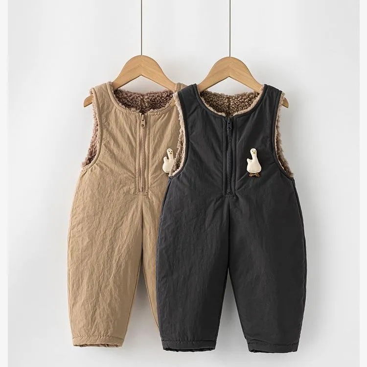 2025 子供服秋冬子供韓国ラムウールプラスベルベットオーバーオール女の子冬服男の子パンツ 5713