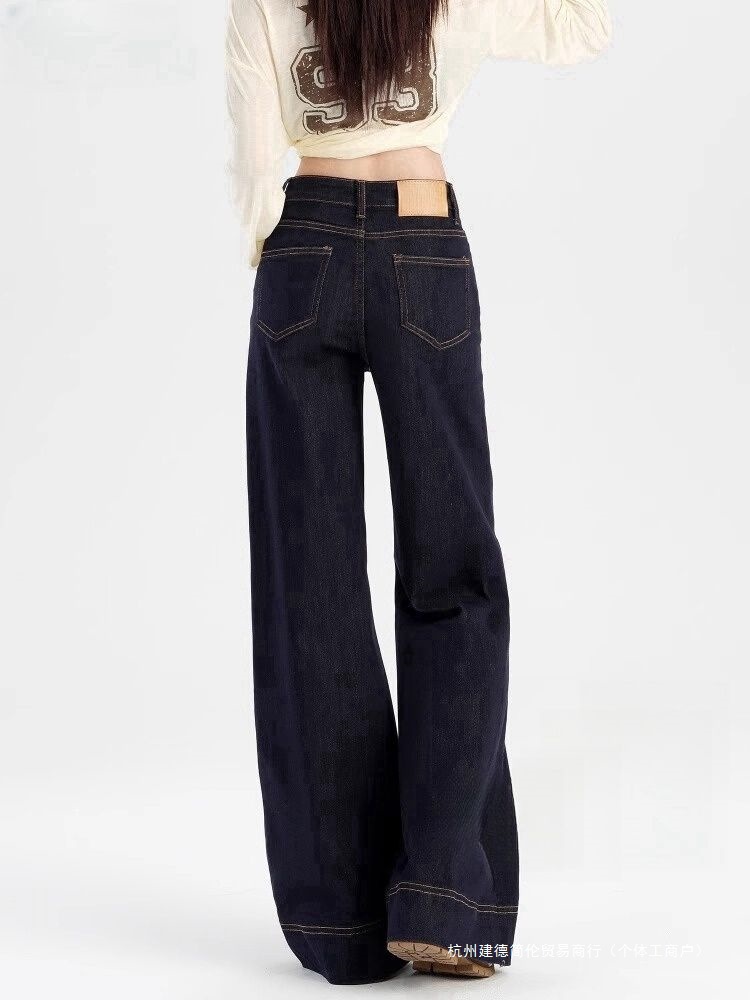 高个子加长美式丹宁蓝阔腿牛仔裤女春季新款宽松显瘦不贴腿喇叭裤
