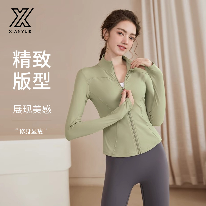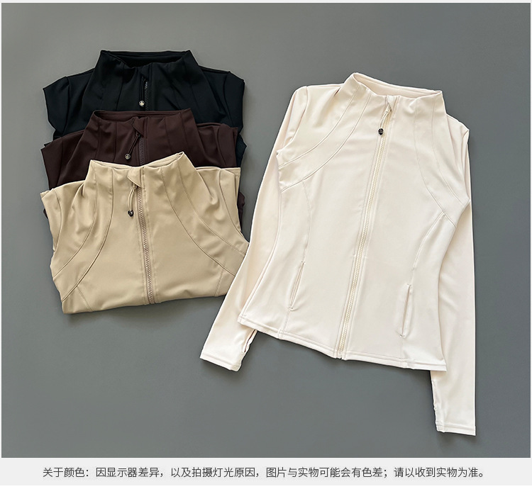 女性用ヨガウェア、春夏スタンドカラージッパージャケット、スリム日焼け止め、痩身長袖ハイエンドランニングスポーツフィットネストップス