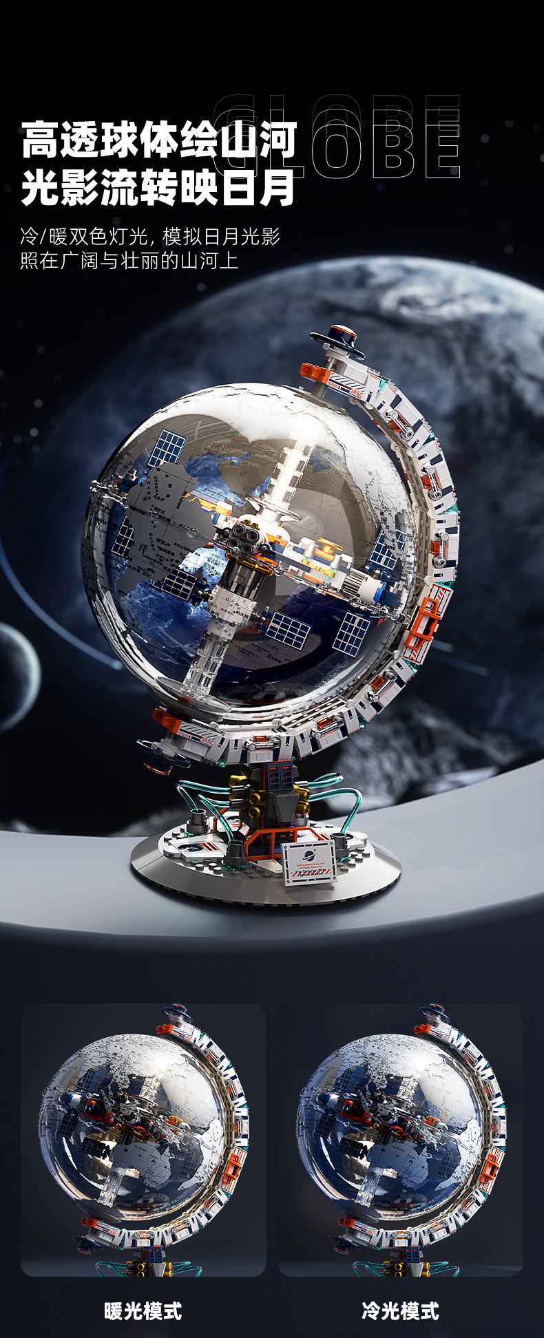 JAKI佳奇积木破晓地球仪CK003拼装益智男孩礼物太空科幻模型摆件