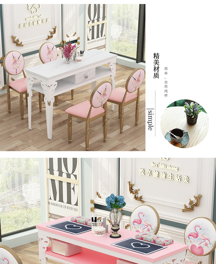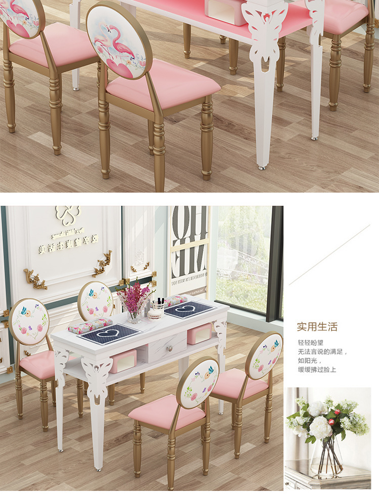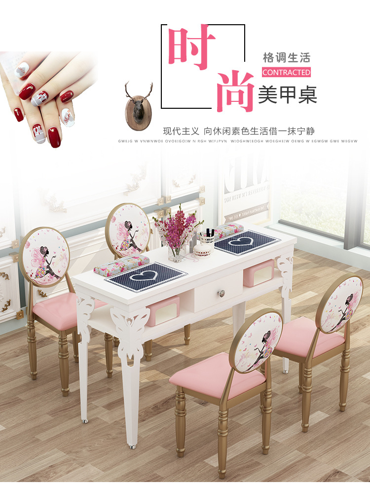 美甲桌子特价 经济型单人桌椅套装双人美甲桌简约现代白色工作台