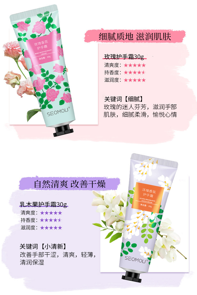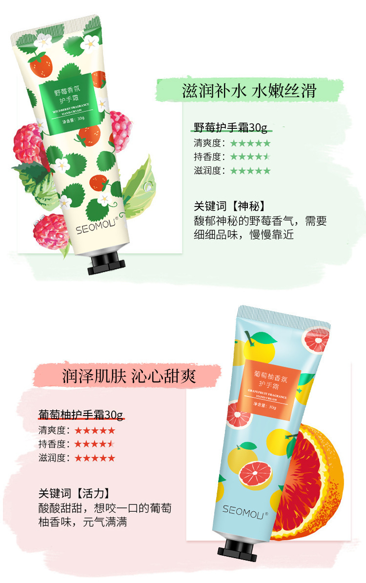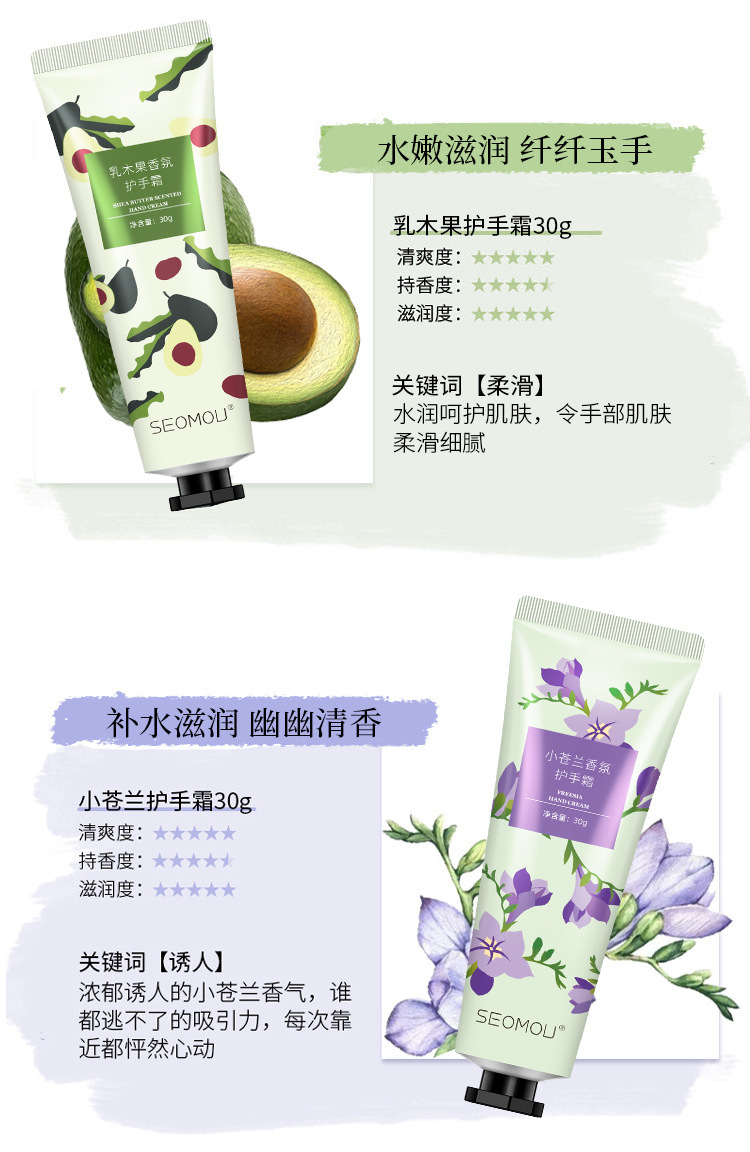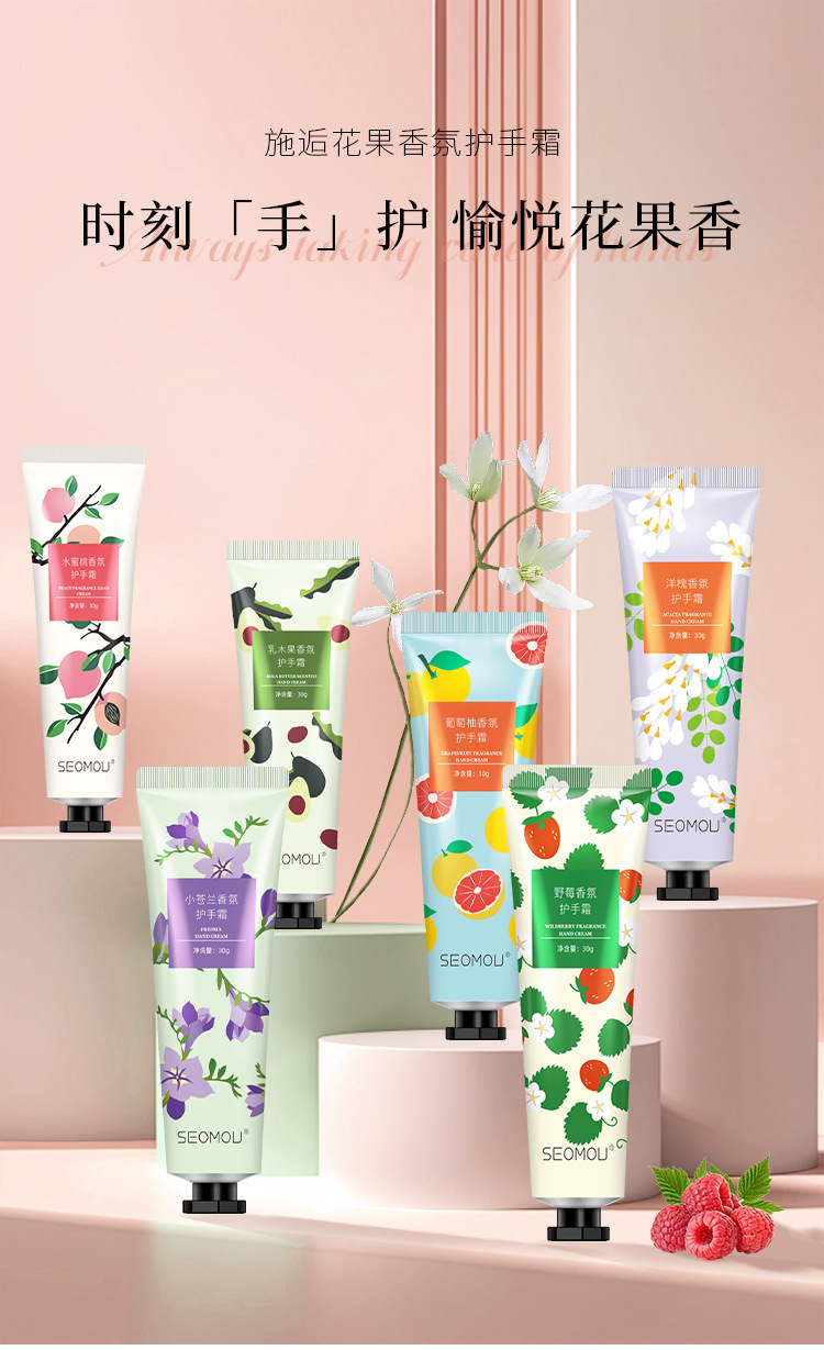 施逅护手霜水果花香植物马油手霜滋润补水保湿防干裂秋冬护肤批发