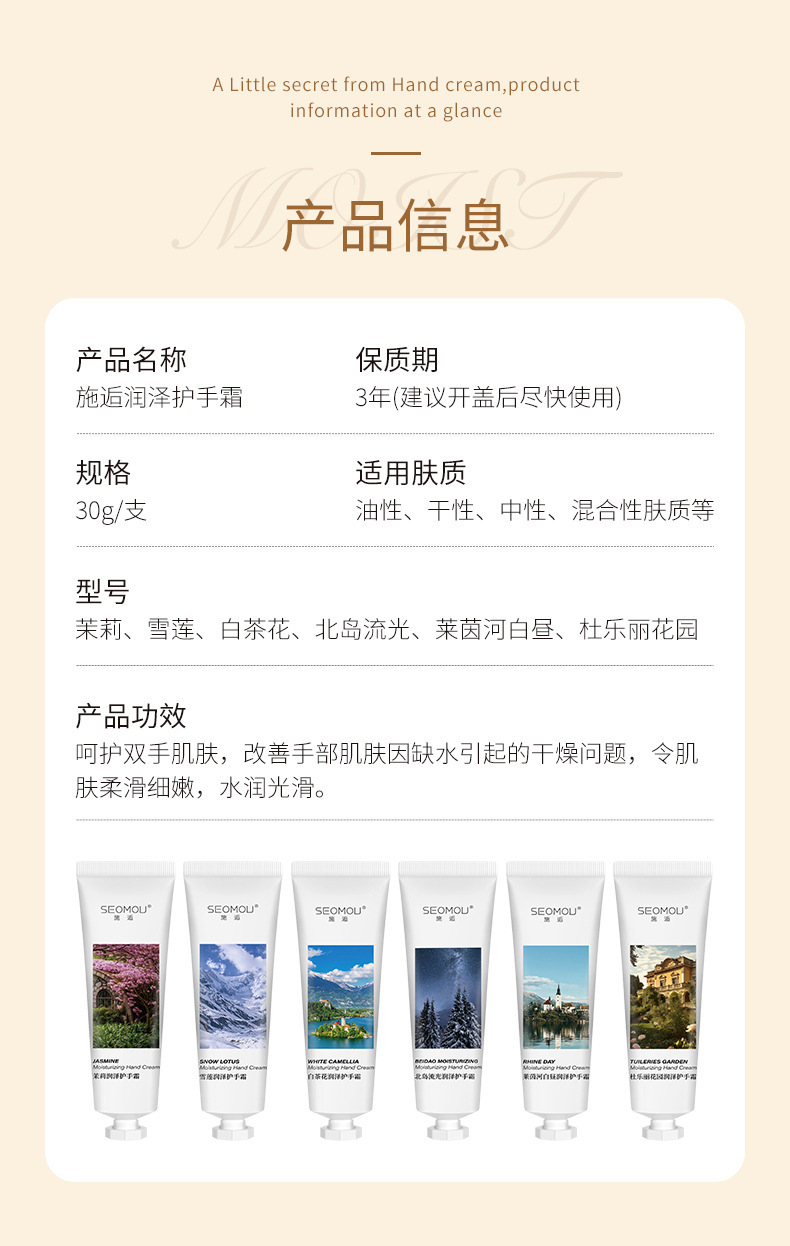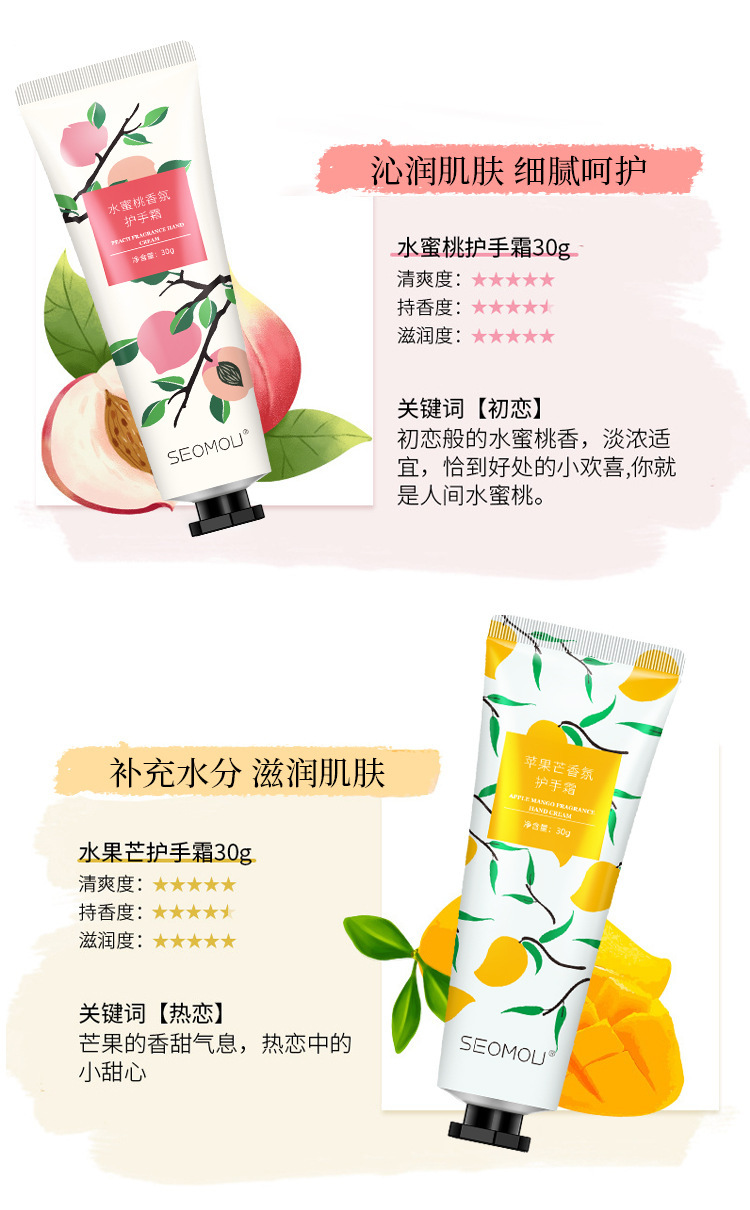 施逅护手霜10款水果植物马油手霜补水保湿滋润嫩滑防干裂批发代发