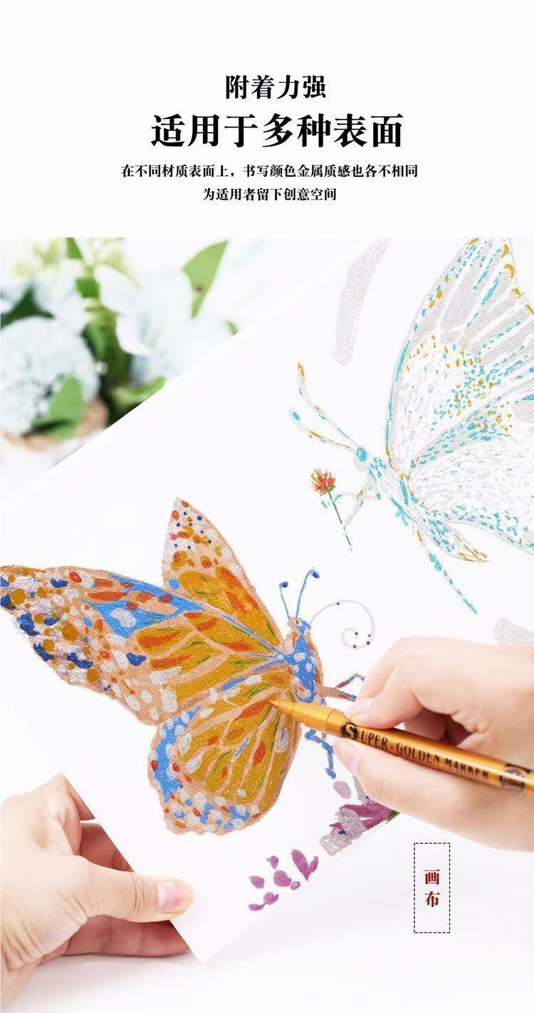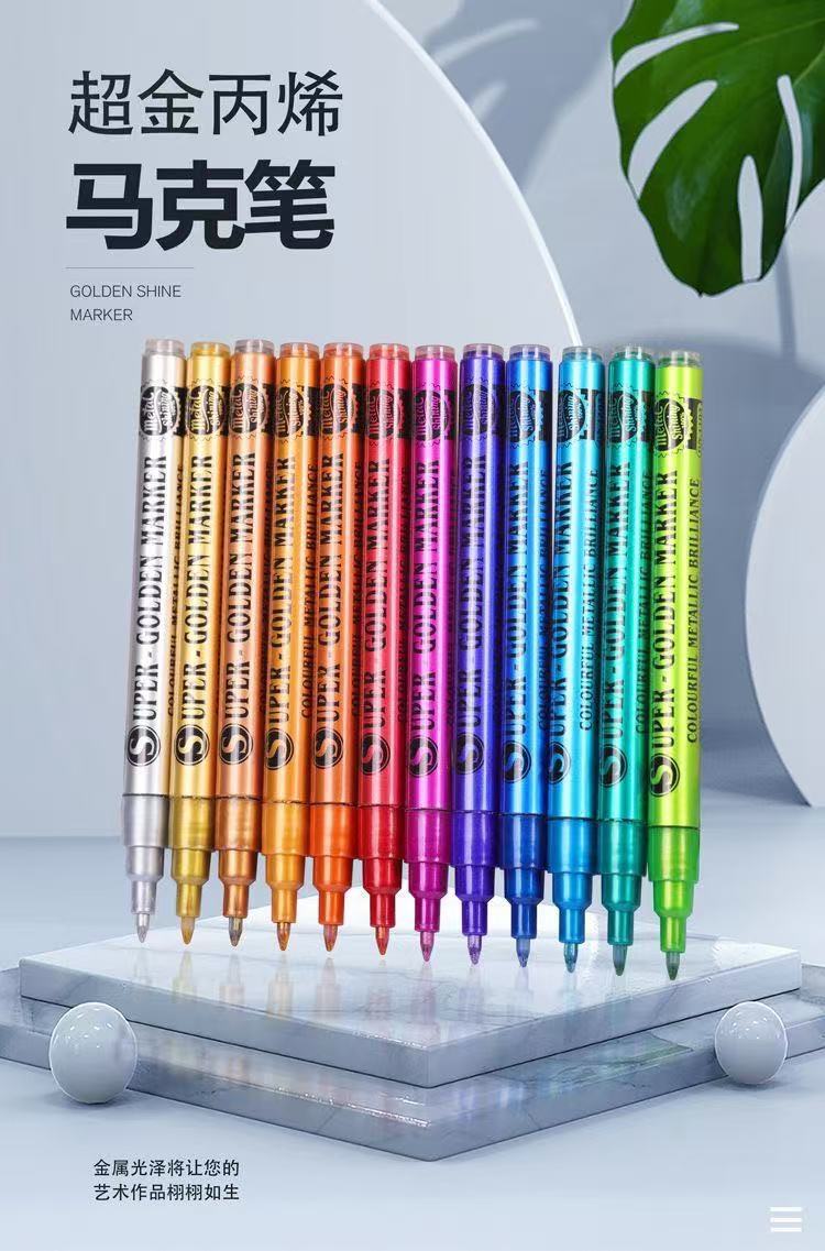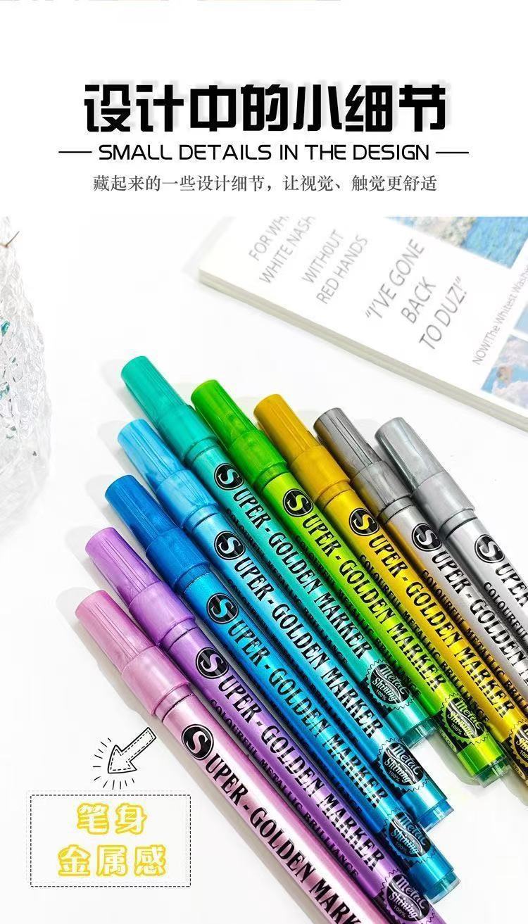 スーパーメタルマーカーペンモデル落書き塗りDIYアルバム黒カード写真ハイライトペン太ペン細いペン