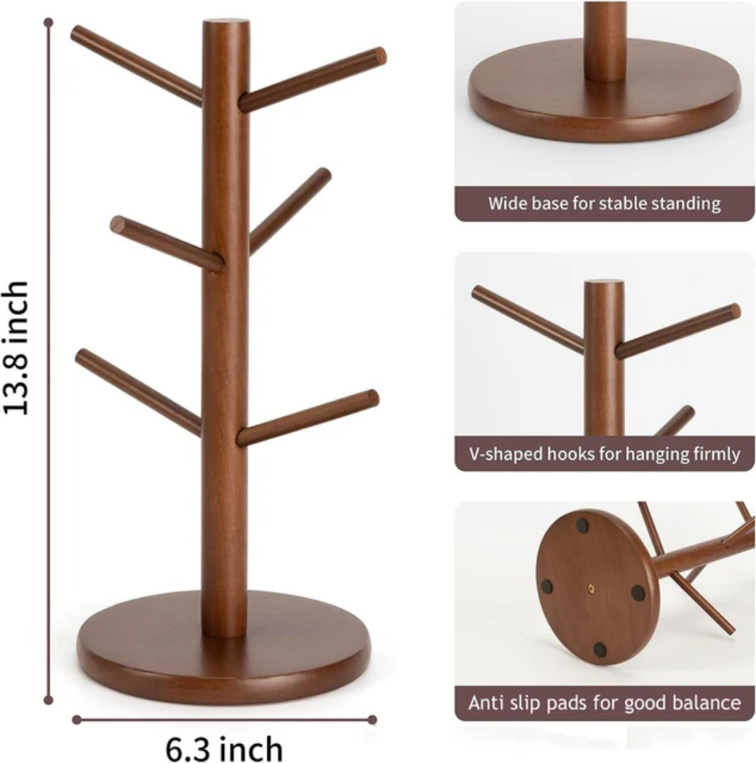 竹ツリー型マグカップホルダーリビングルームキッチンカップ収納ラック木製デスクトップコーヒーカップ収納ラック