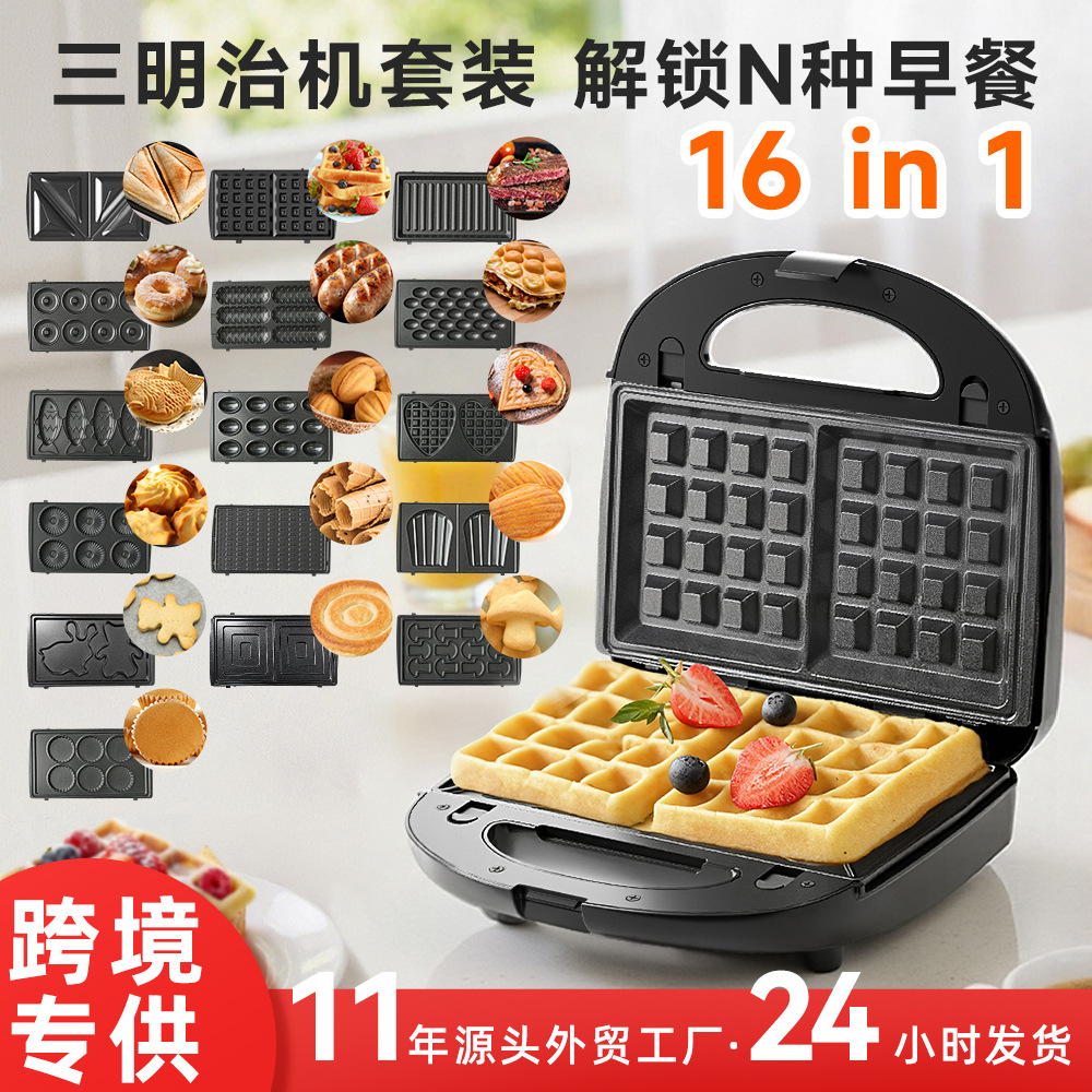 贸亚马逊十合一早餐机三明治机 多功能烤面包华夫饼机双面加热甜甜圈蛋糕机吐司机