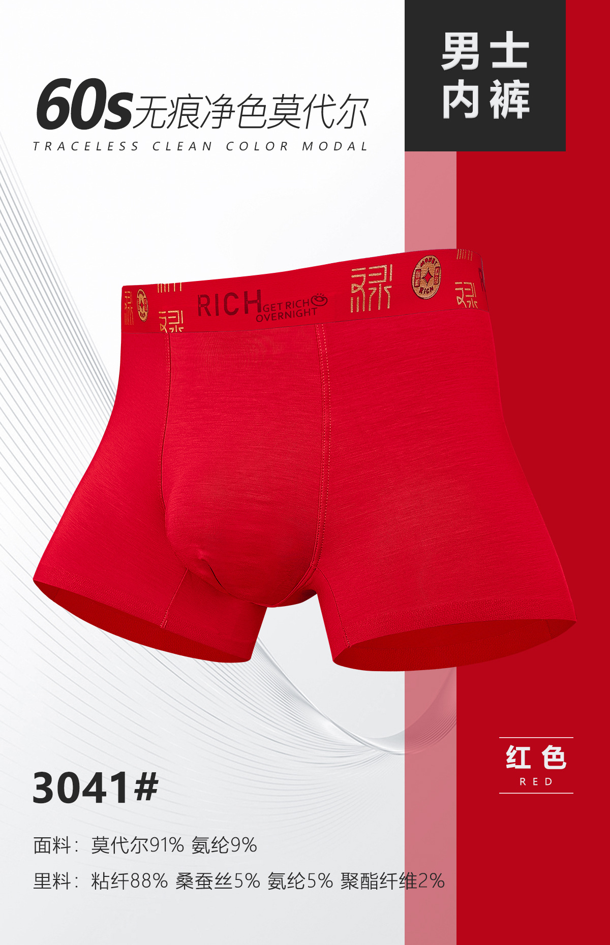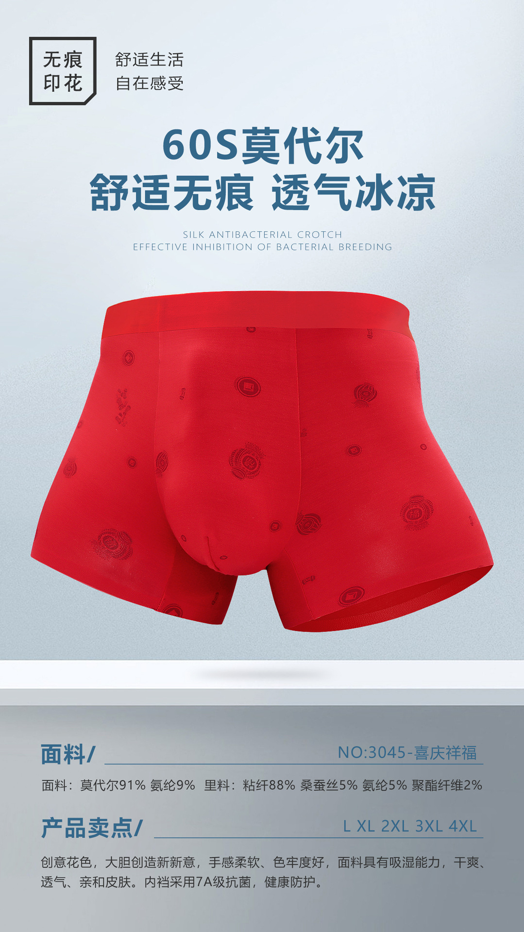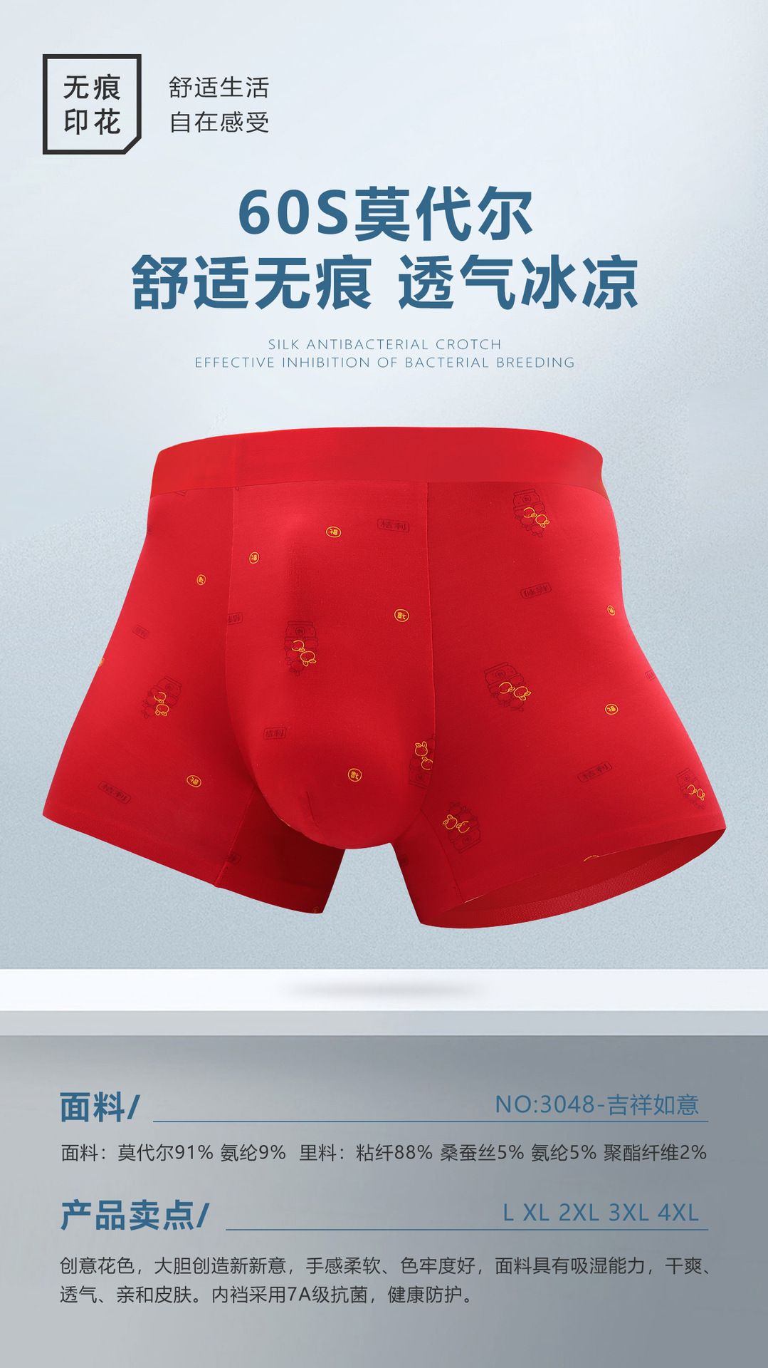2024本命年下着男モーデール中腰無痕四角ズボン平角ズボン結婚男性紅下着卸売り