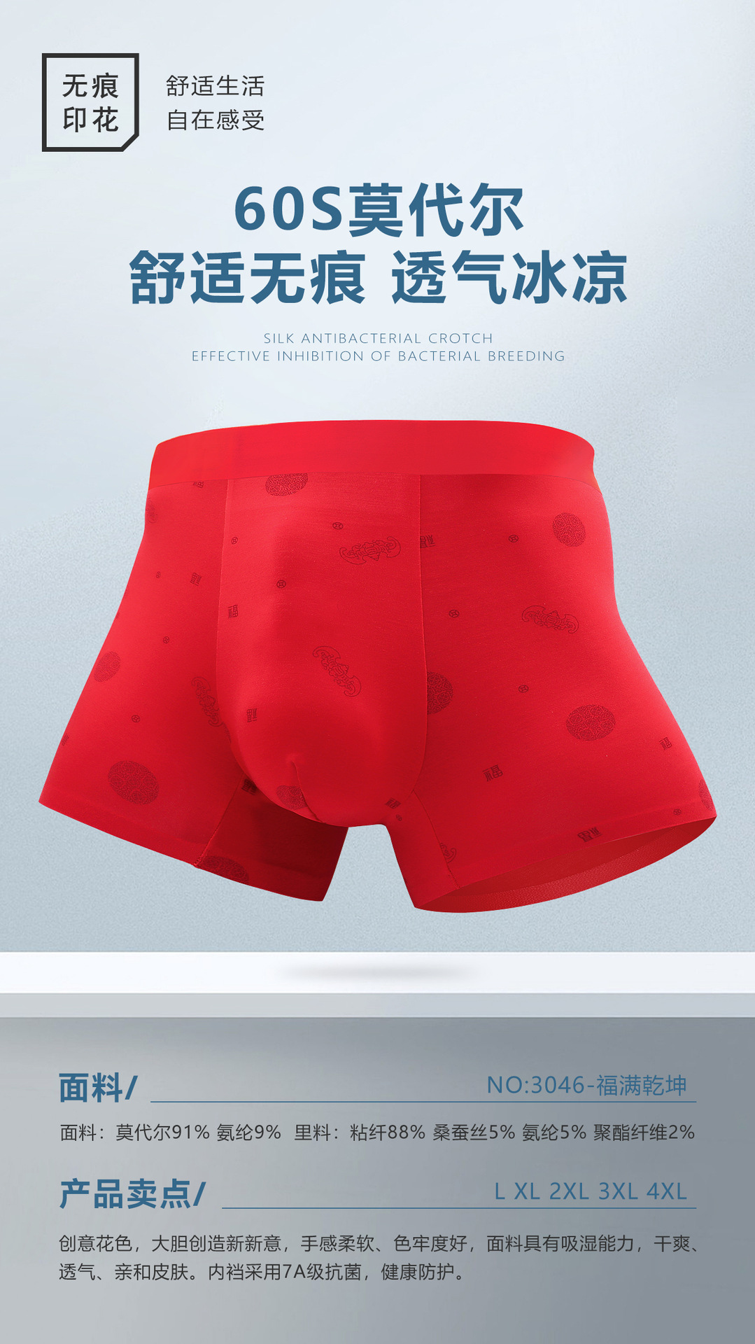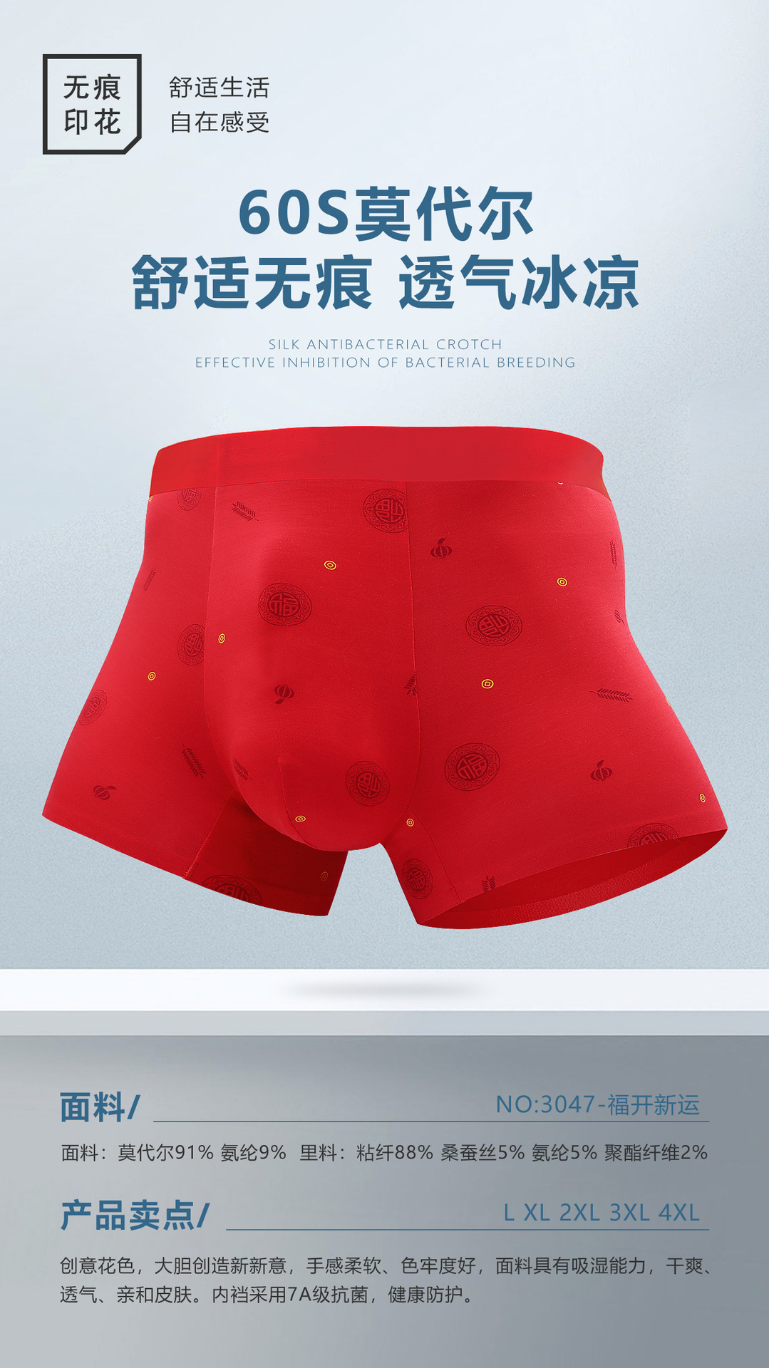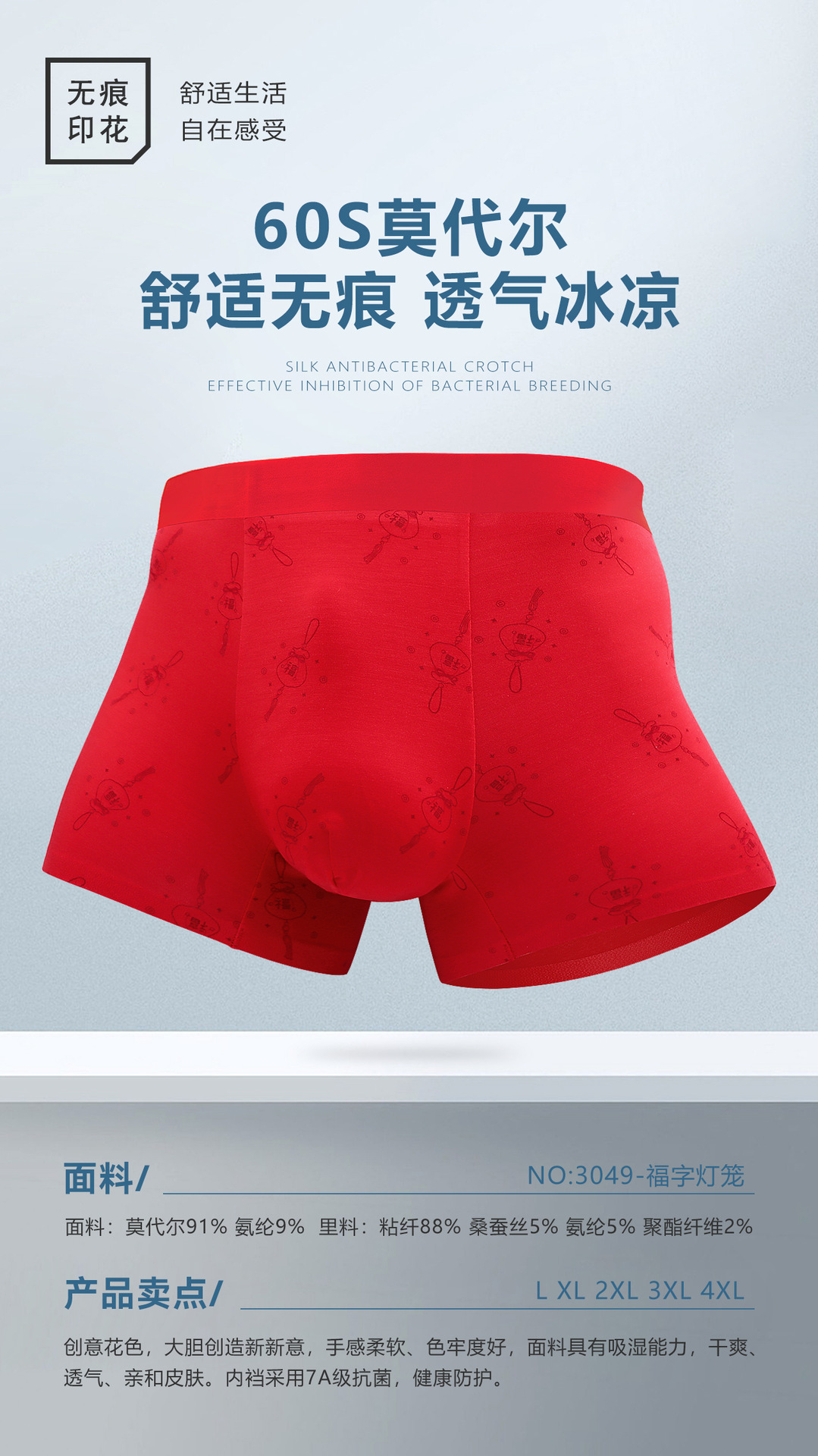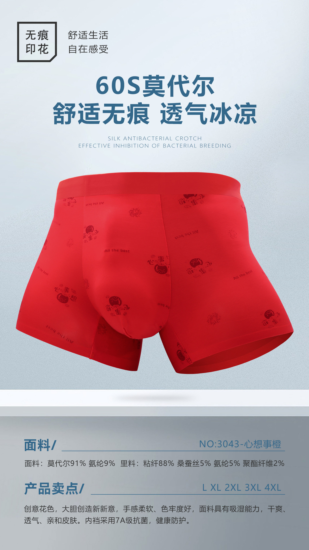 2024本命年下着男モーデール中腰無痕四角ズボン平角ズボン結婚男性紅下着卸売り