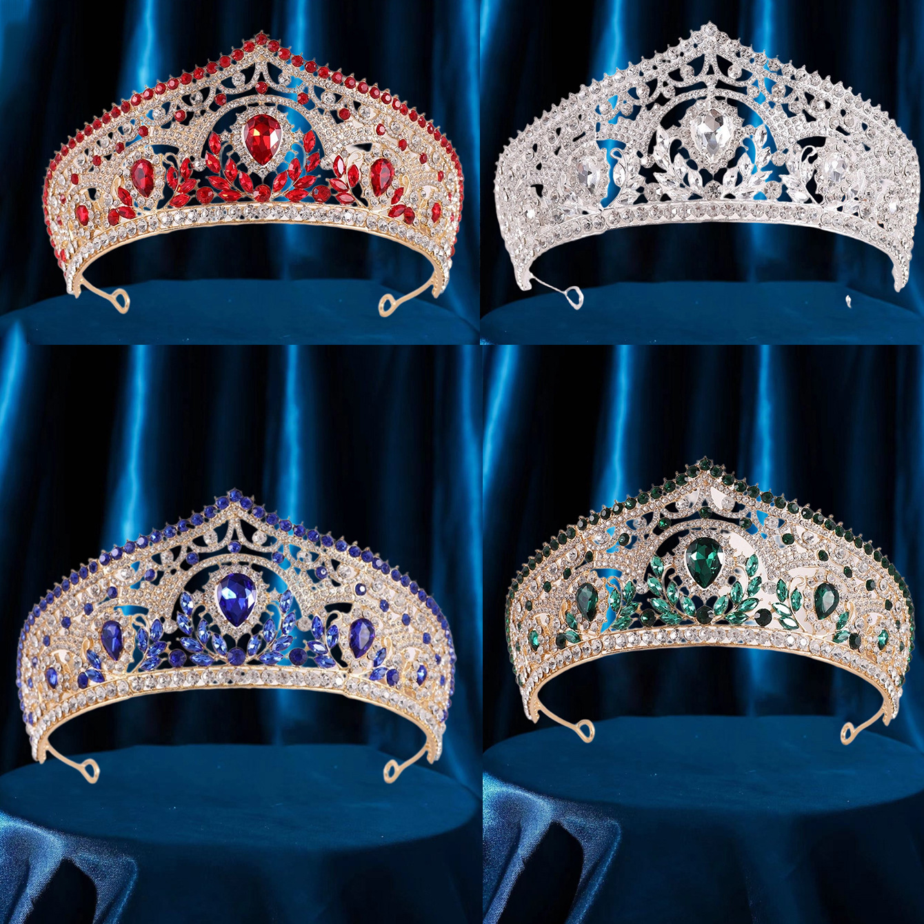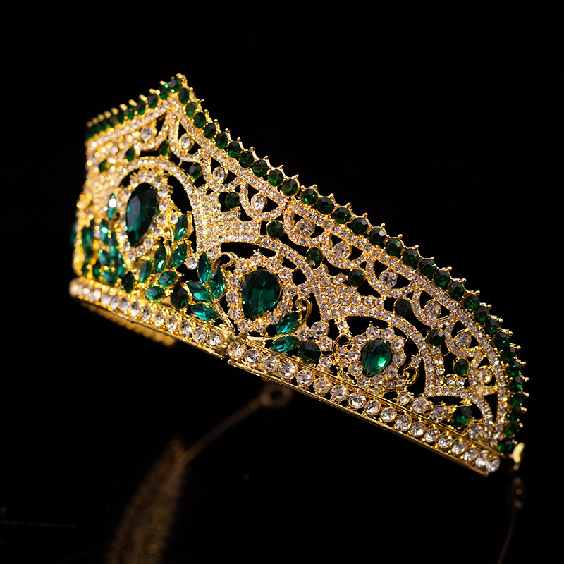 2025新款绿水晶新娘欧美皇冠结婚婚纱配饰模特走秀跨境巴洛克皇冠