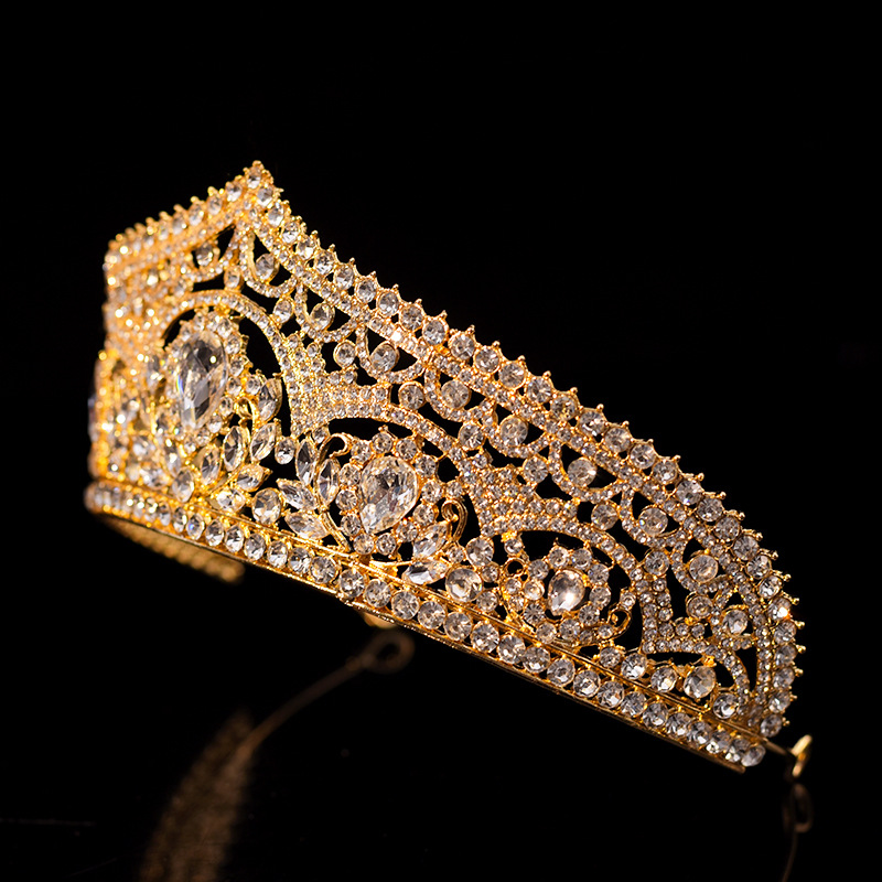 欧美新娘皇冠头饰跨境水钻合金公主满钻精美王冠发饰结婚盘发配饰