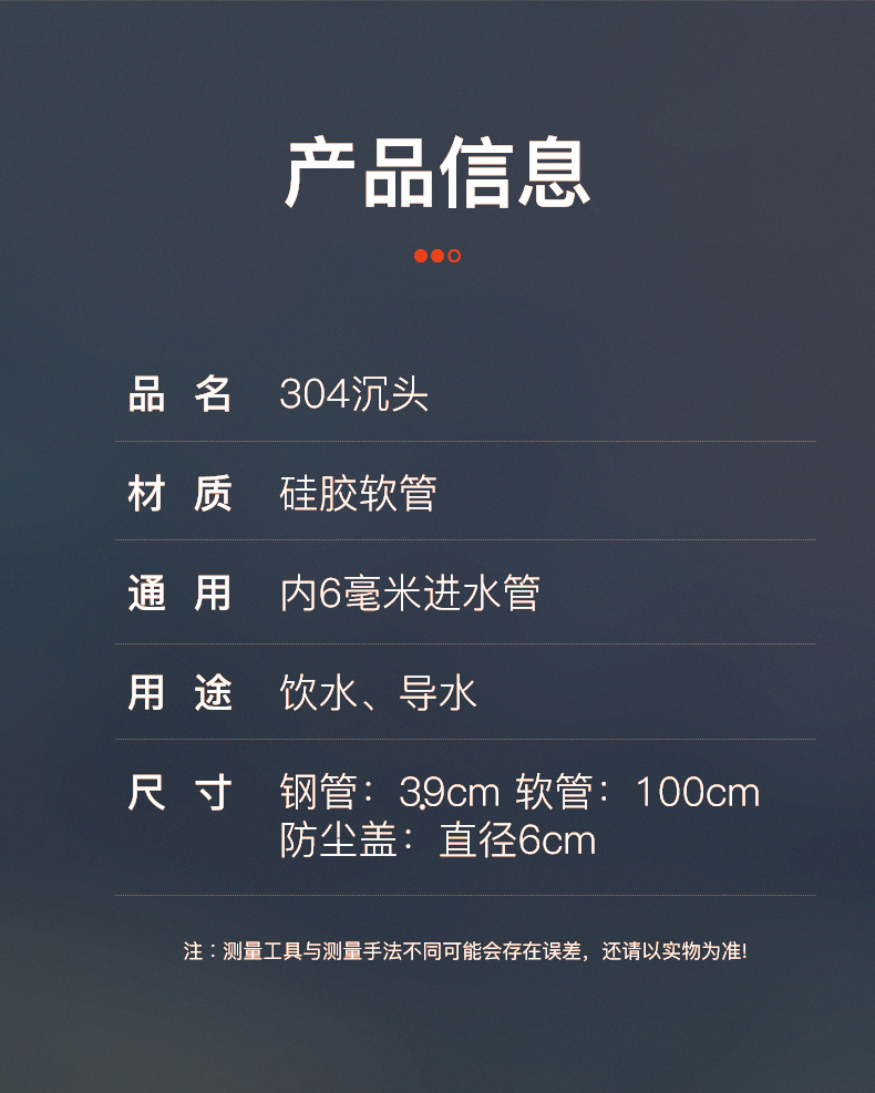 茶器自動上水管加重沈頭吸水湯たんぽバケツ水抜きホース304ステンレス沈頭