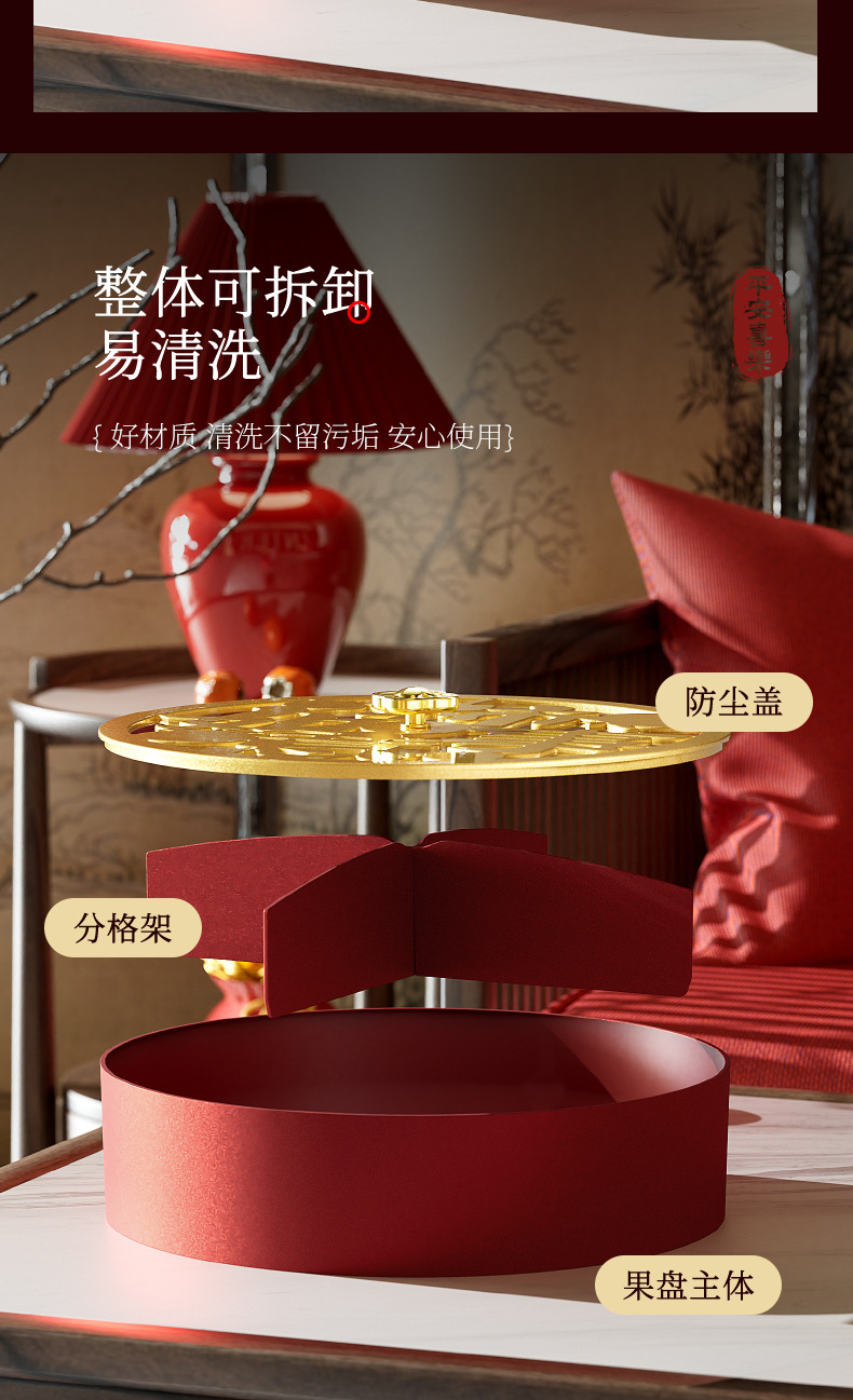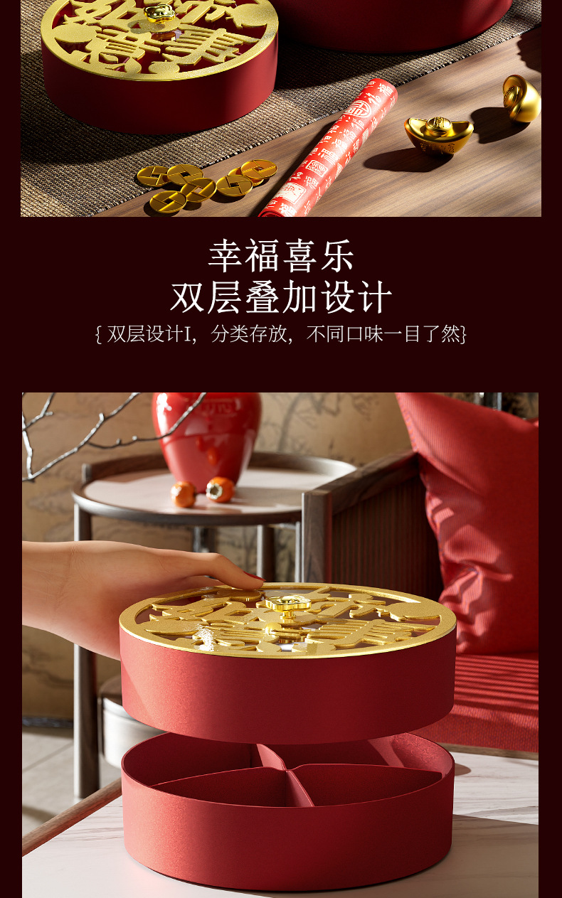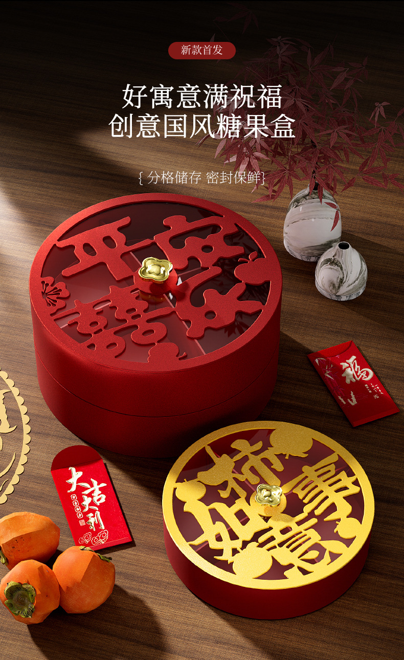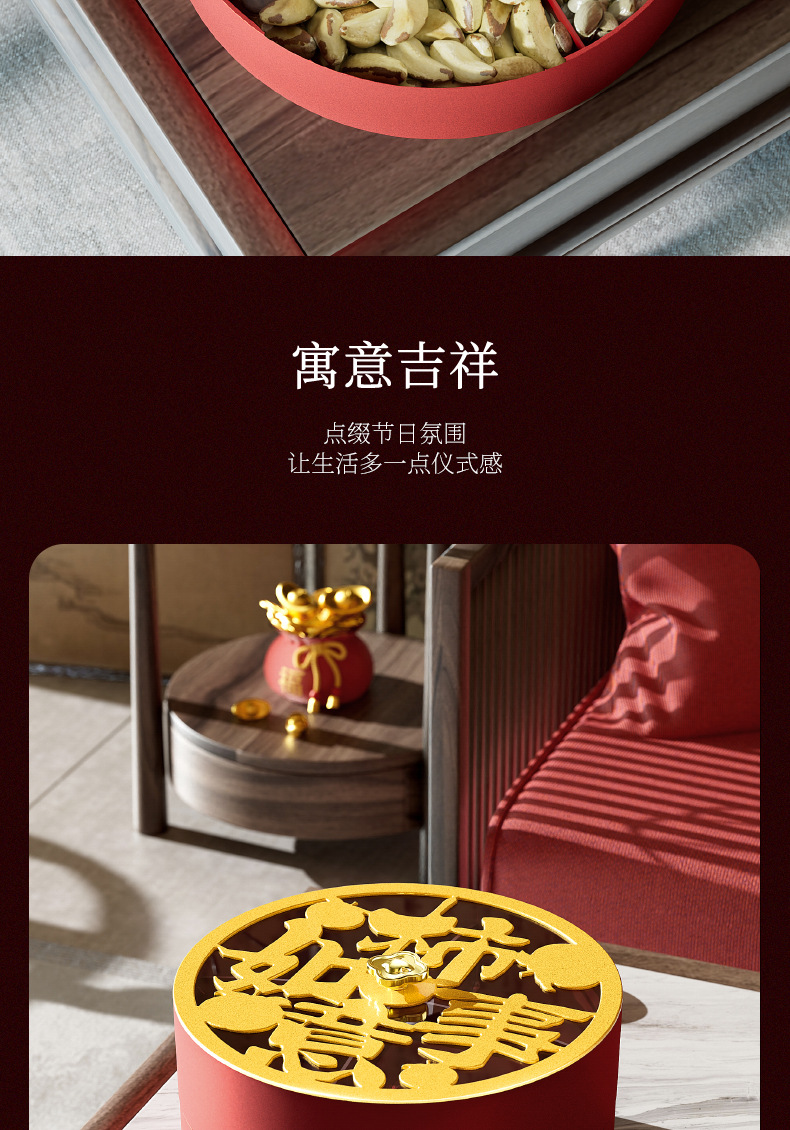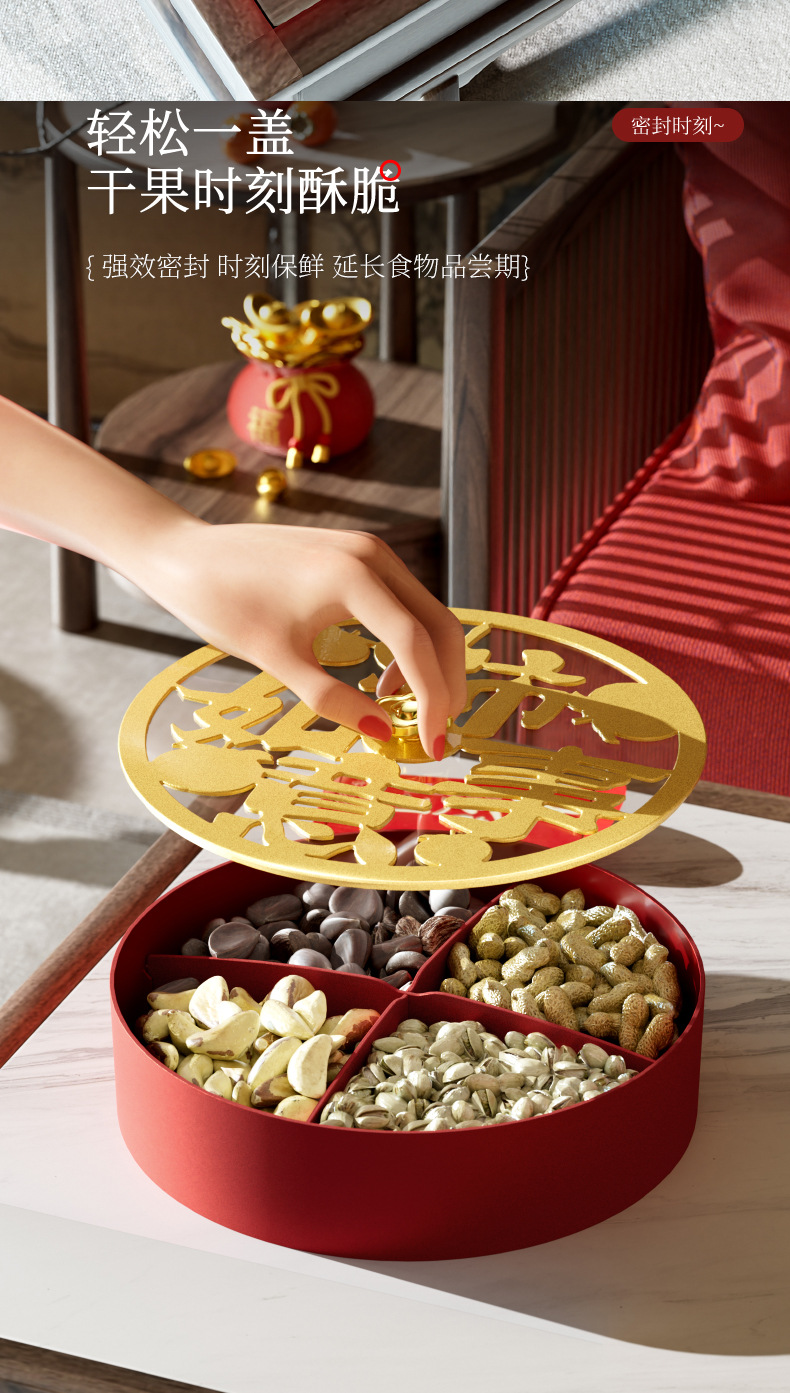 クリエイティブドライフルーツ皿客間茶何枚か蓋付きキャンディーケースお祝い赤新中国式スナックナッツ収納ケース卸売り