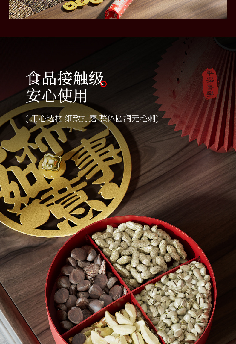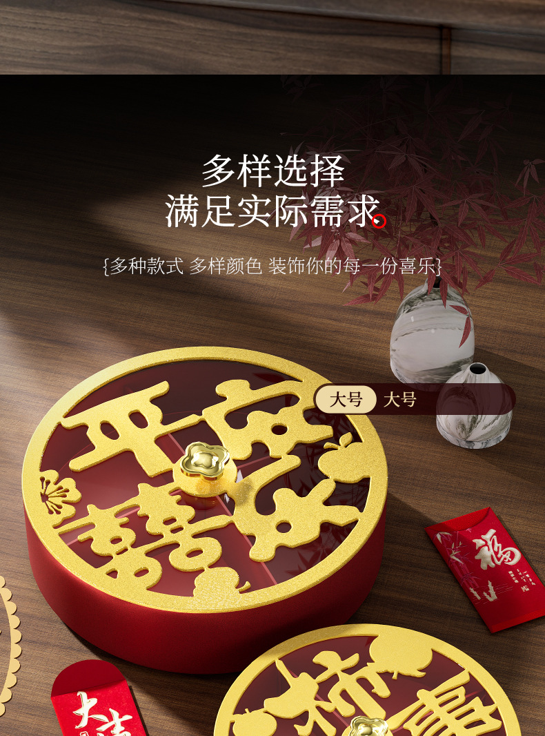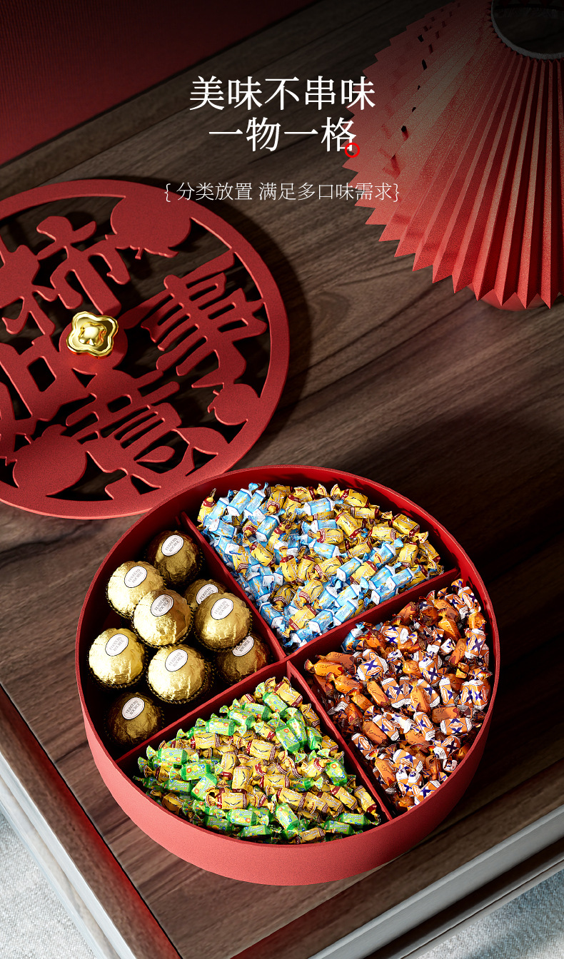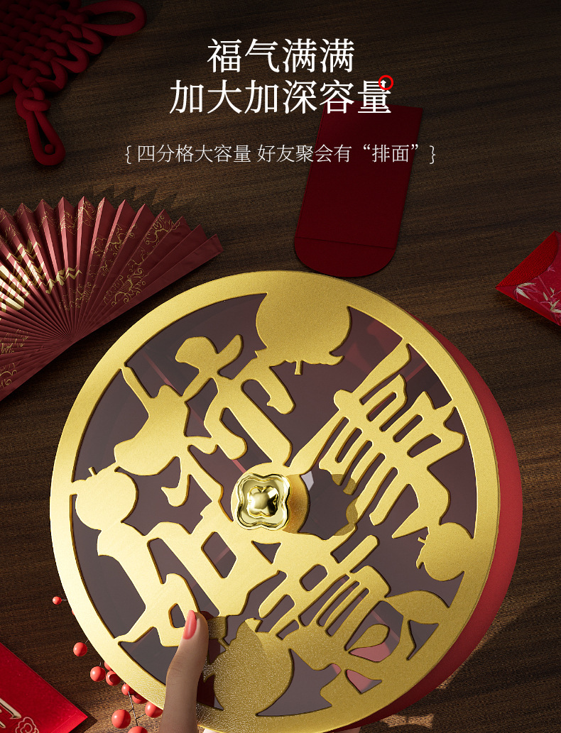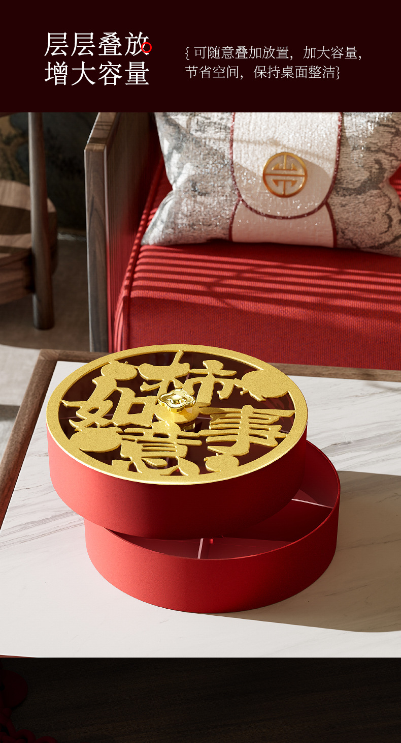 クリエイティブドライフルーツ皿客間茶何枚か蓋付きキャンディーケースお祝い赤新中国式スナックナッツ収納ケース卸売り