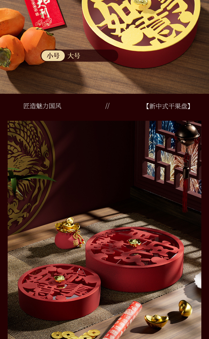 新商品の国潮風乾果盤の客間のお茶のテーブルのお祝いの飴の皿の家庭用多機能の果物のお菓子の皿