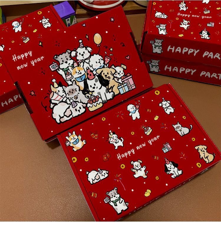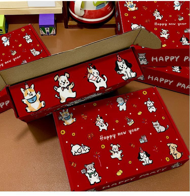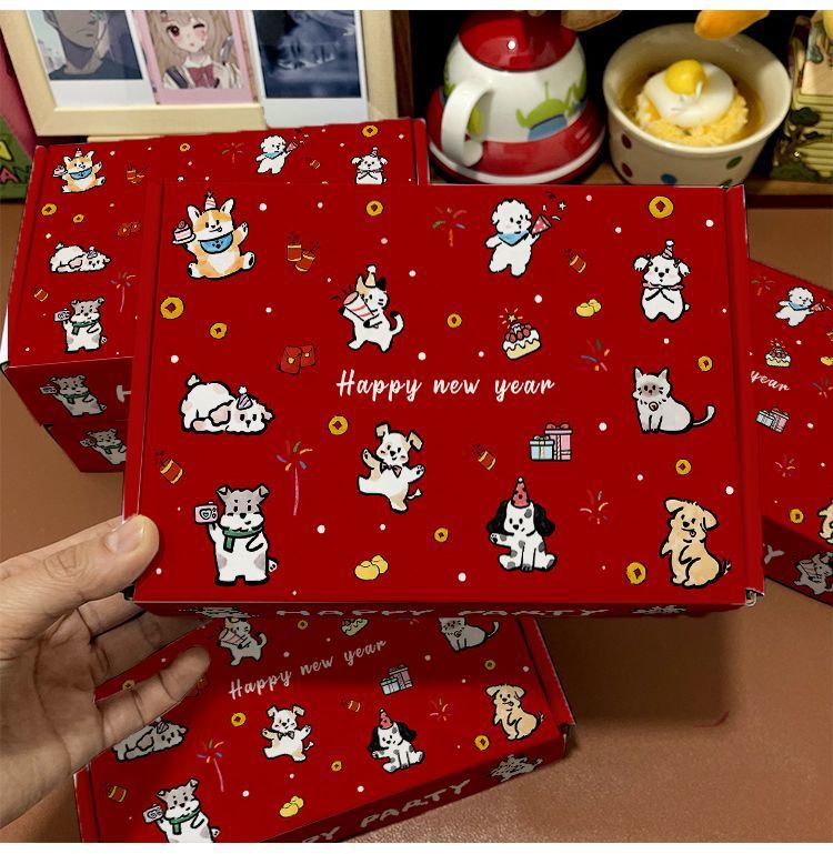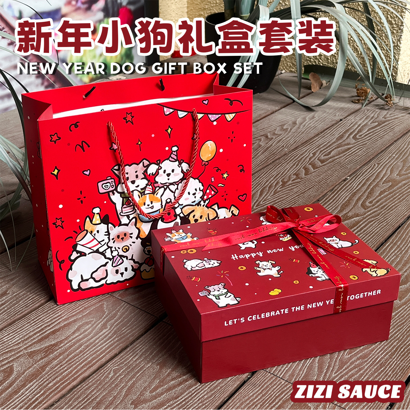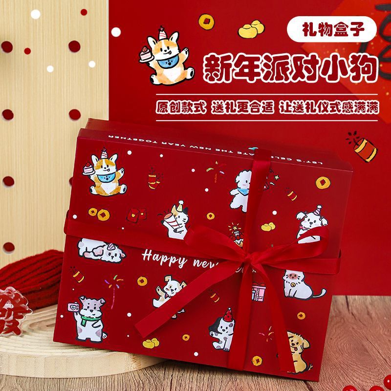 元旦新年小狗礼物盒红色礼盒送朋友闺蜜礼品袋糖果零食包装空盒子