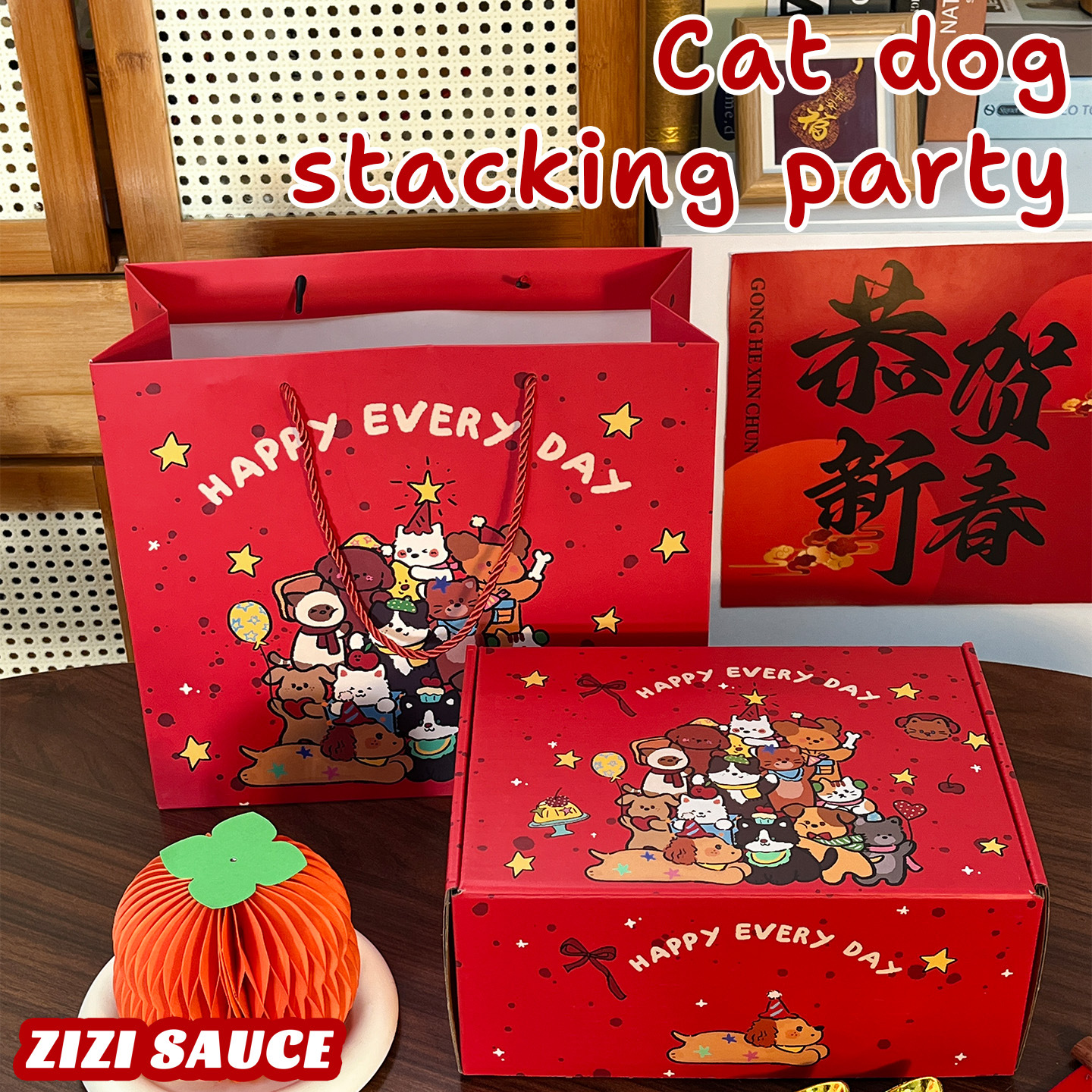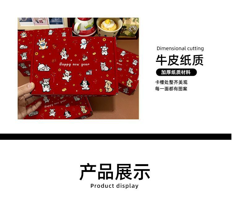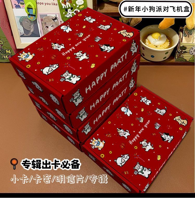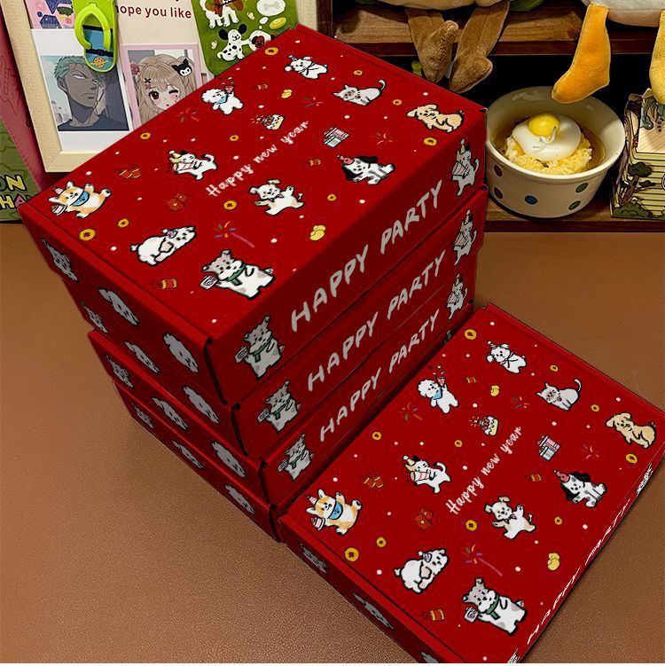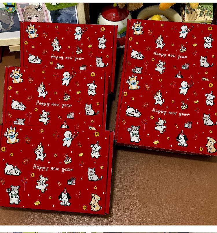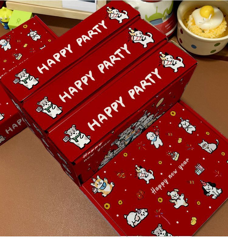元旦新年小狗礼物盒红色礼盒送朋友闺蜜礼品袋糖果零食包装空盒子