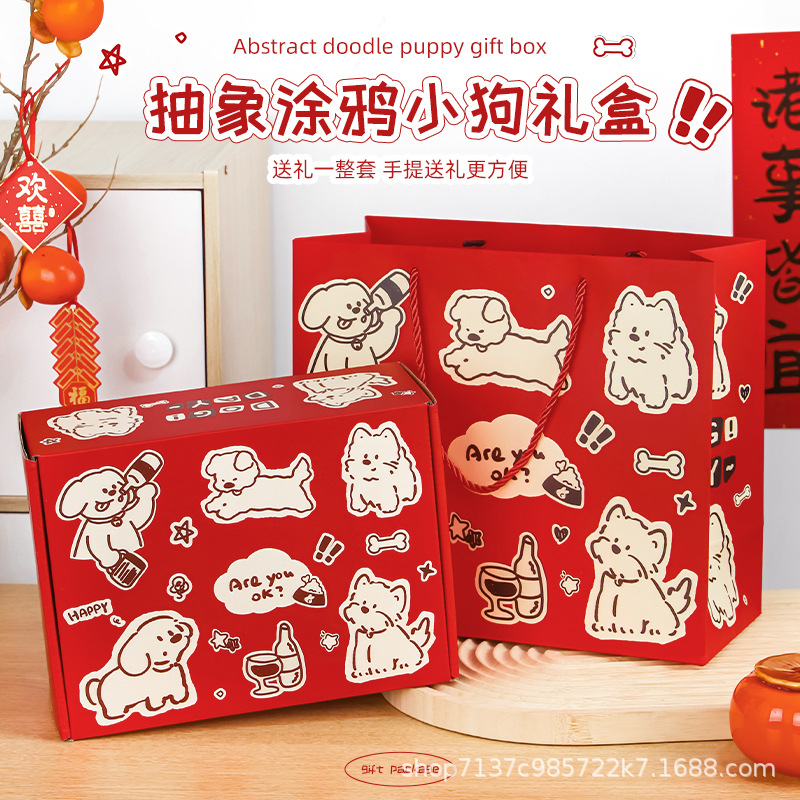高颜值可爱小狗礼品盒打包出卡礼物盒送老师朋友伴手喜庆礼盒礼袋