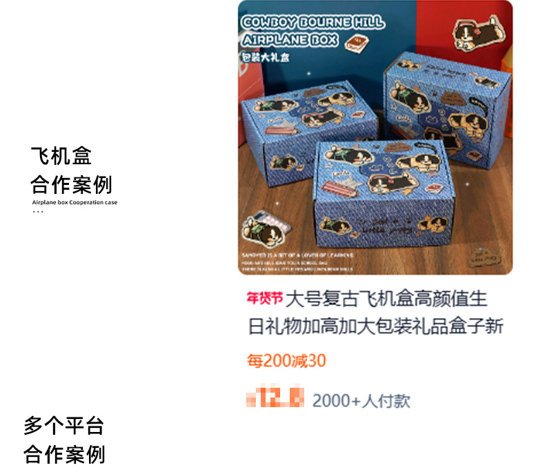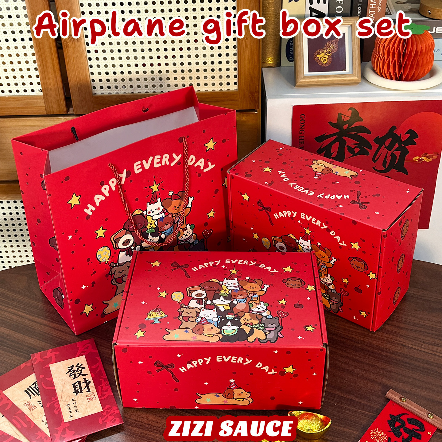 新年过年春节喜庆大号礼品盒飞机盒快递打包礼物礼袋糖果包装空盒