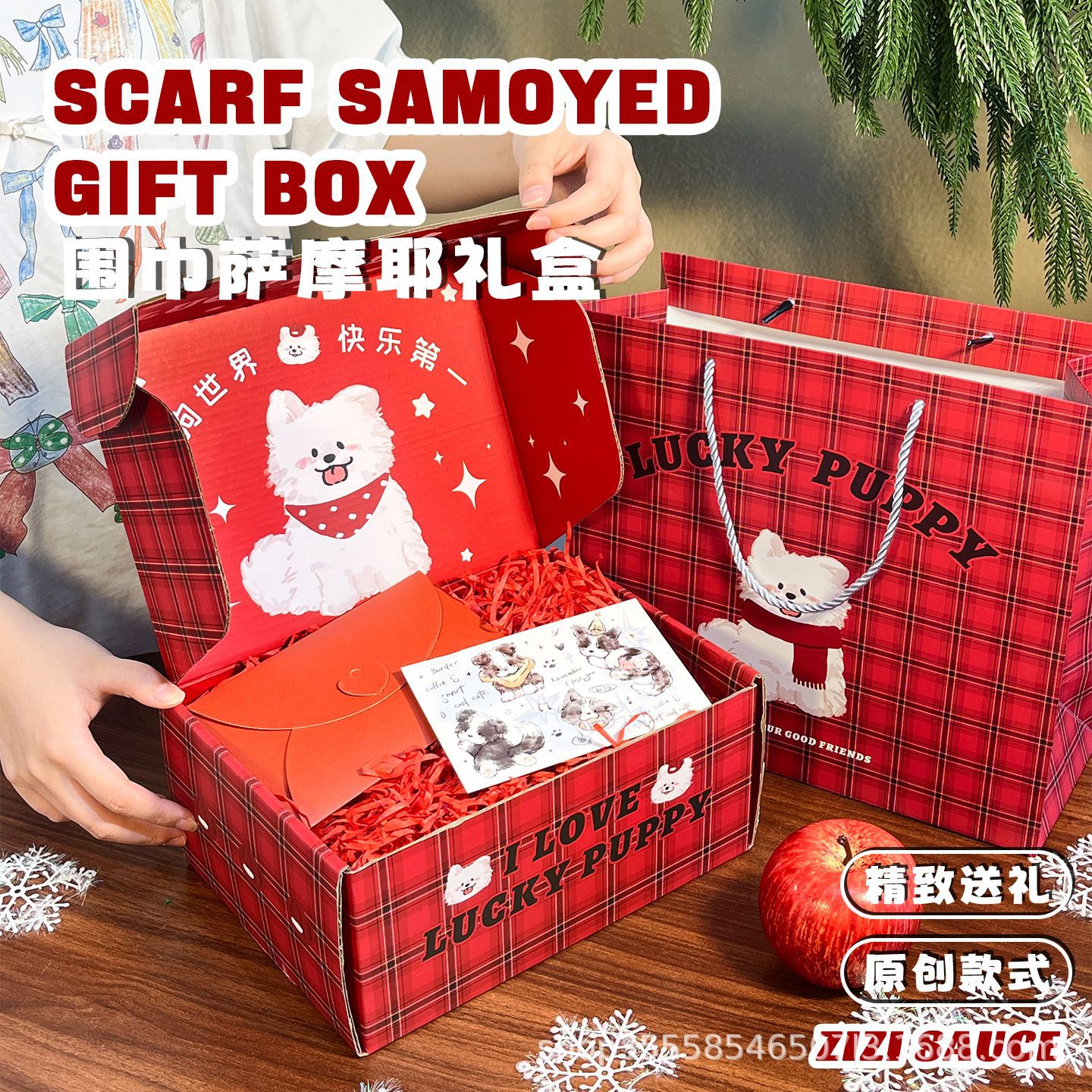 围巾萨摩耶红色圣诞节日大号飞机盒加厚礼盒打包空盒子礼物袋包装