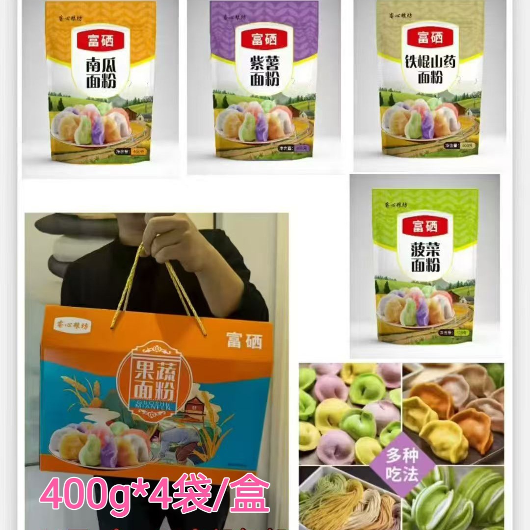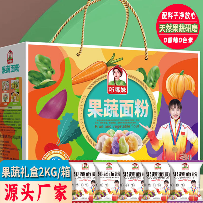 【面粉礼盒】五彩果蔬面粉饺子彩色蔬菜石磨果蔬面粉礼盒款代发