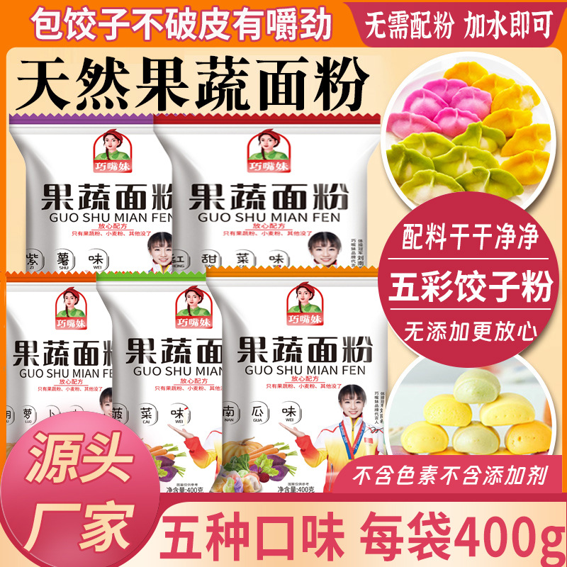 解放碑五彩果蔬饺子粉七彩五颜六色多彩果疏面粉彩色饺子粉面
