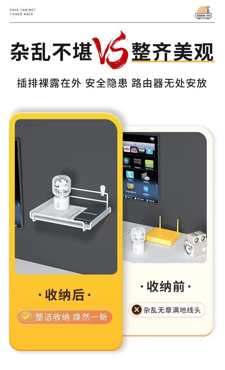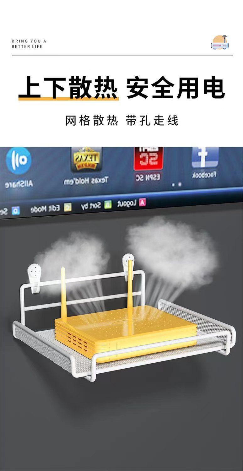 路由器放置架电视机顶盒置物架墙上免打孔墙壁托架wifi收纳盒支架