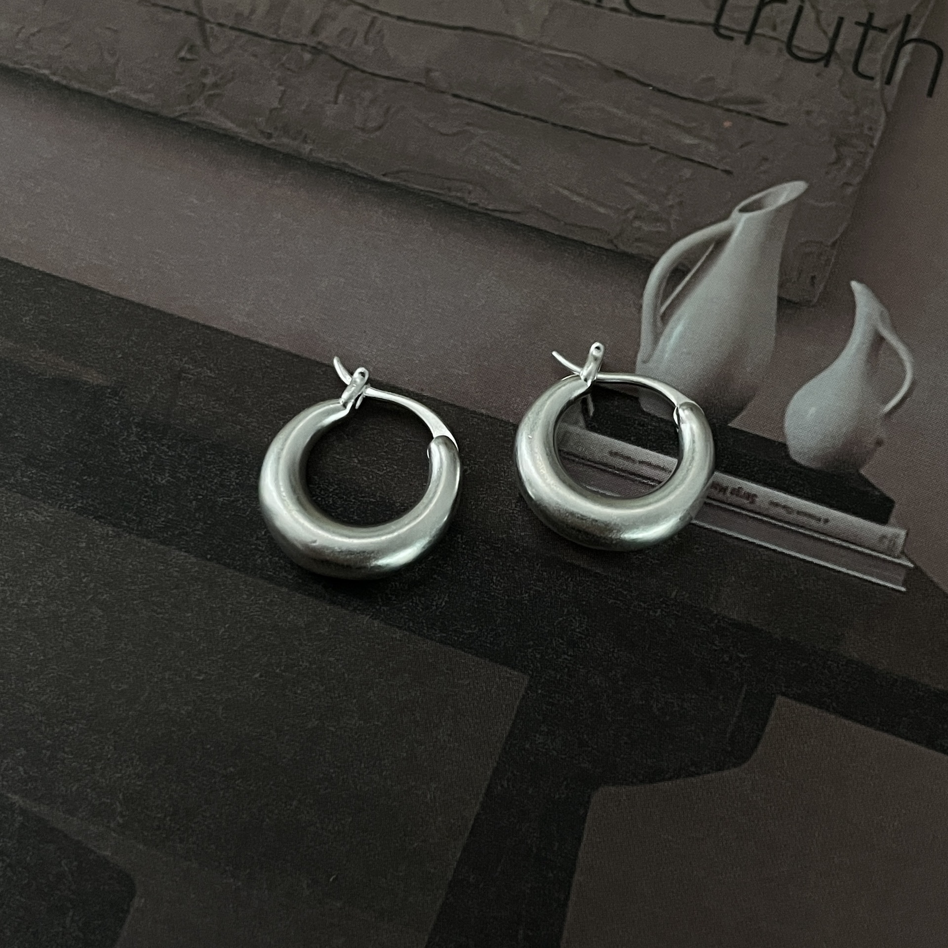 S925纯银韩版时尚基础款磨砂雾面质感耳扣女INS风月牙形个性耳环