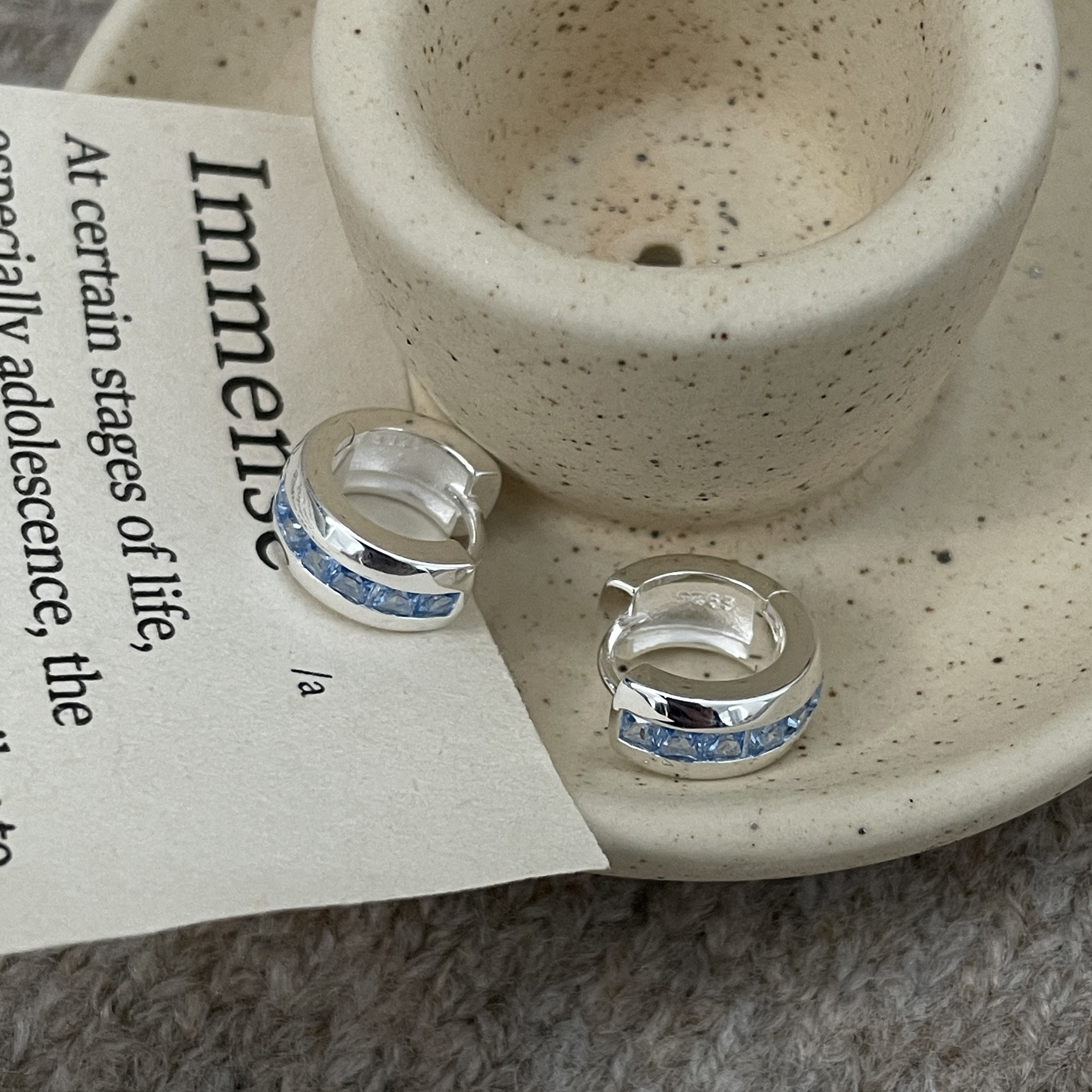 赛伊娜韩版经典镶嵌方形锆石女款耳扣百搭小众设计感圆环时髦耳饰
