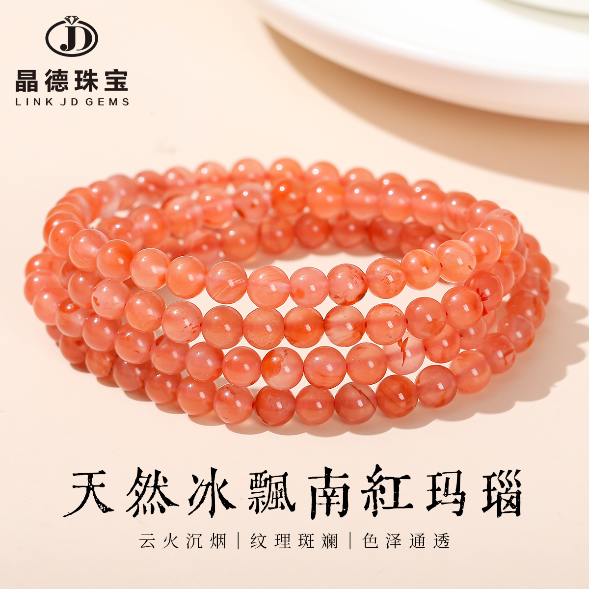 晶徳宝石天然川料南紅漂花瑪瑙多輪ブレスレット女性氷漂南紅レトロ手串卸売り