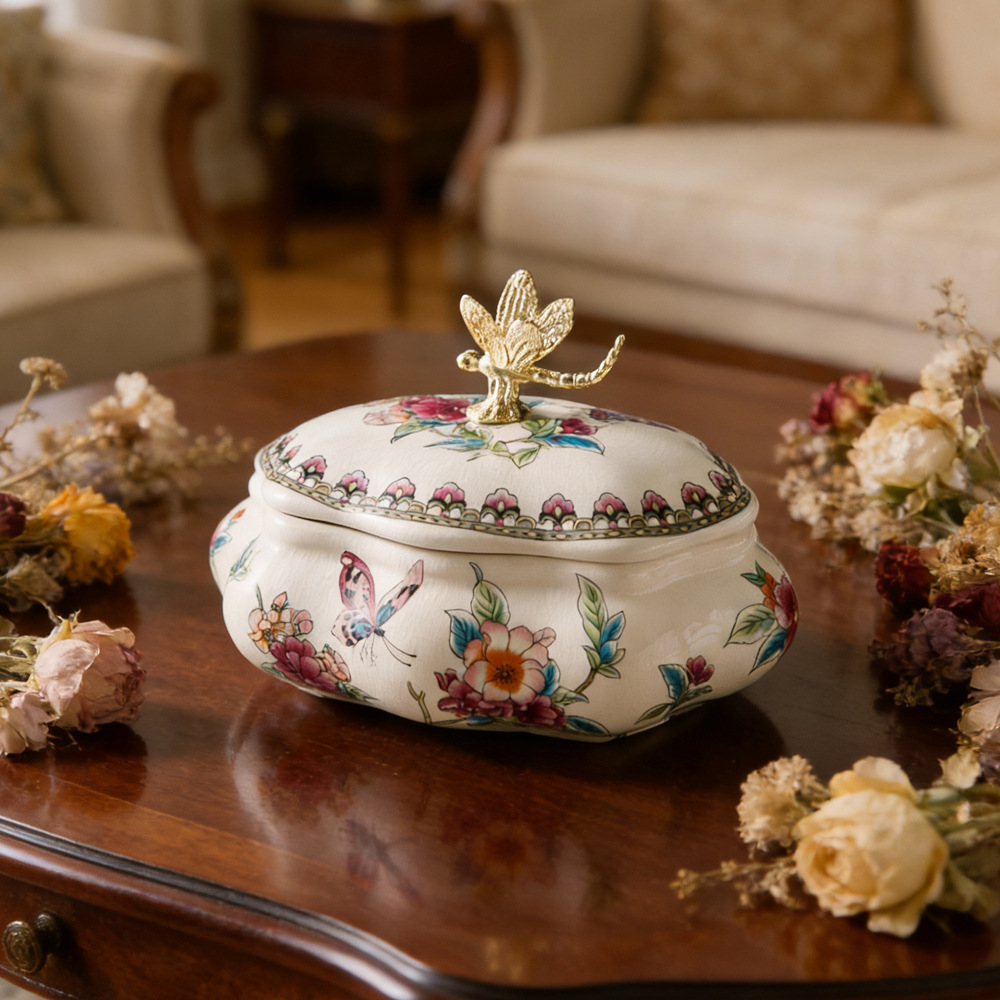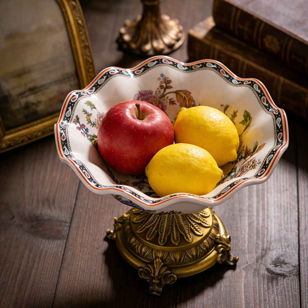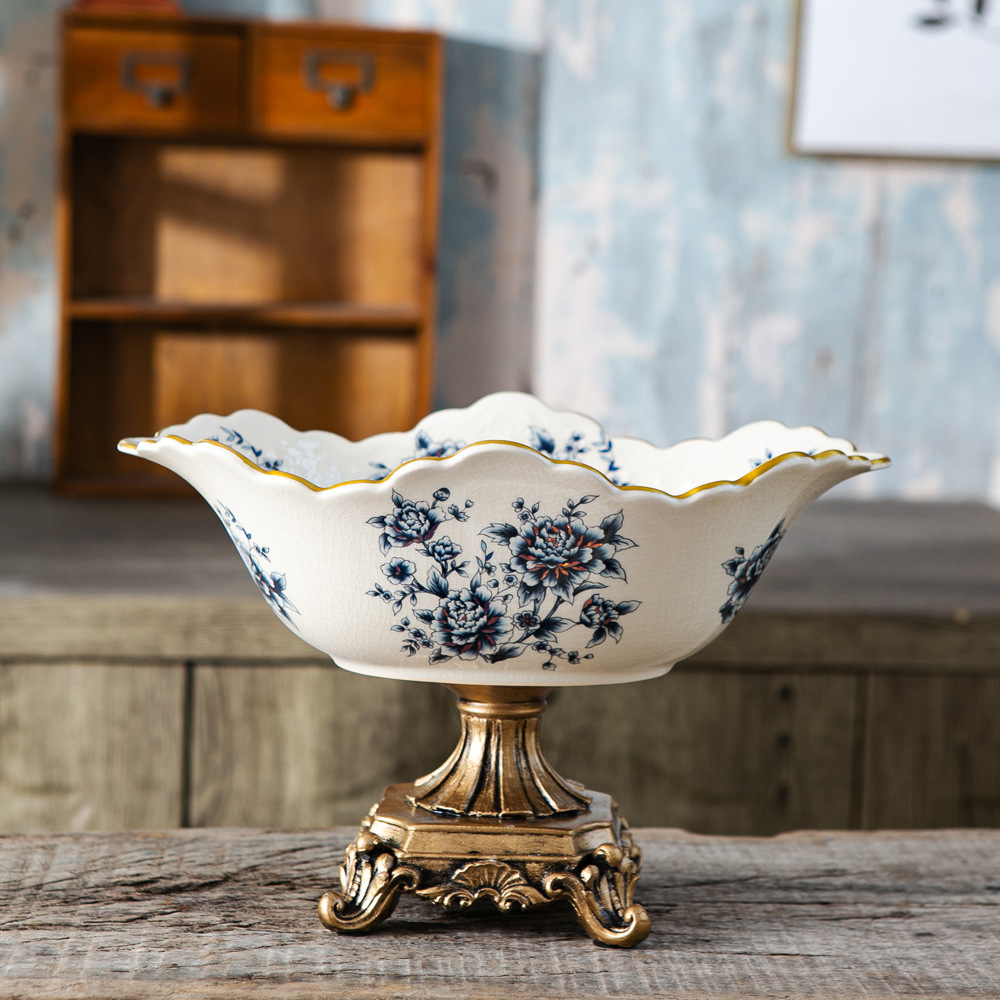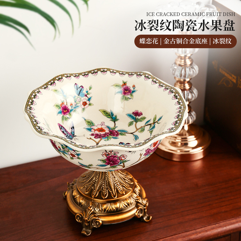 冰裂纹材质+树脂底座 欧式/美式复古花卉图案 手工描金