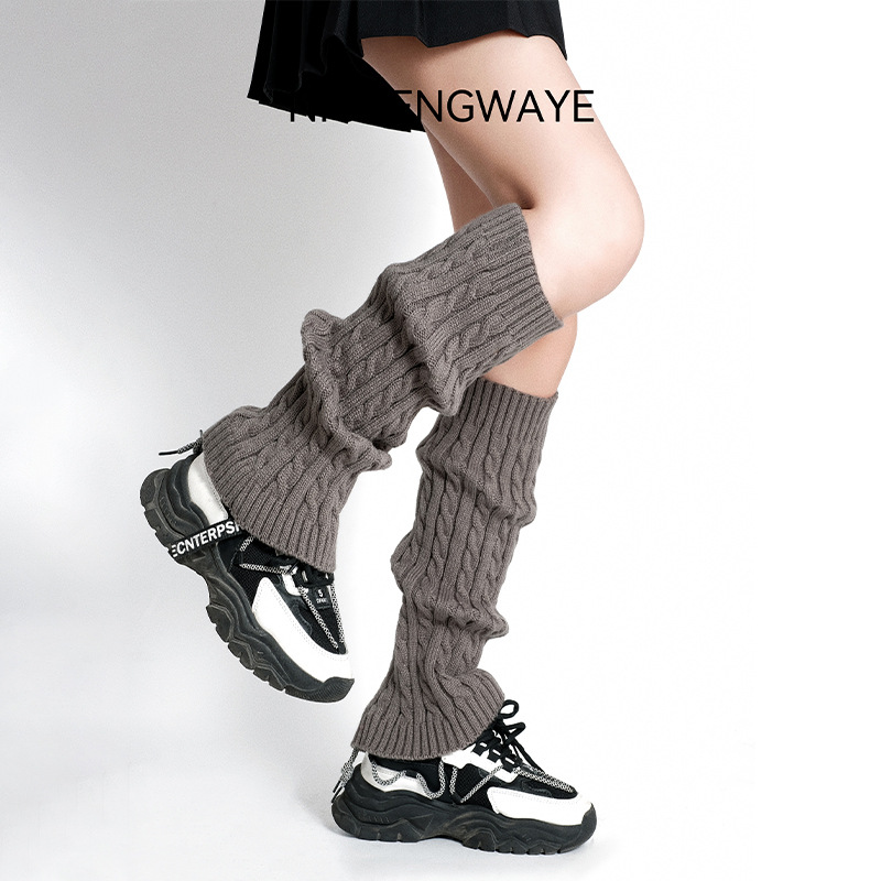灰色复古麻花翻边纽腿套女休闲百搭加厚保暖叠穿打底裤堆堆袜套