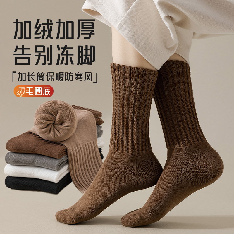 诸暨袜子女秋冬中筒袜女士加厚毛圈袜加绒保暖毛巾袜冬季女袜批发