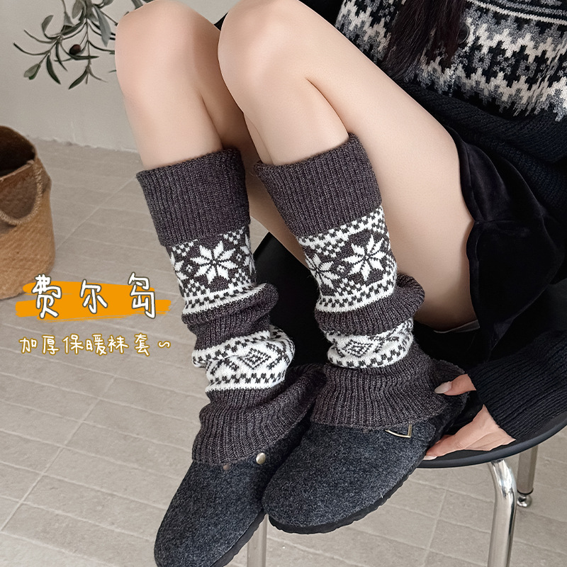 复古费尔岛袜套堆堆袜子女配雪地靴秋冬季加厚保暖针织长筒小腿套