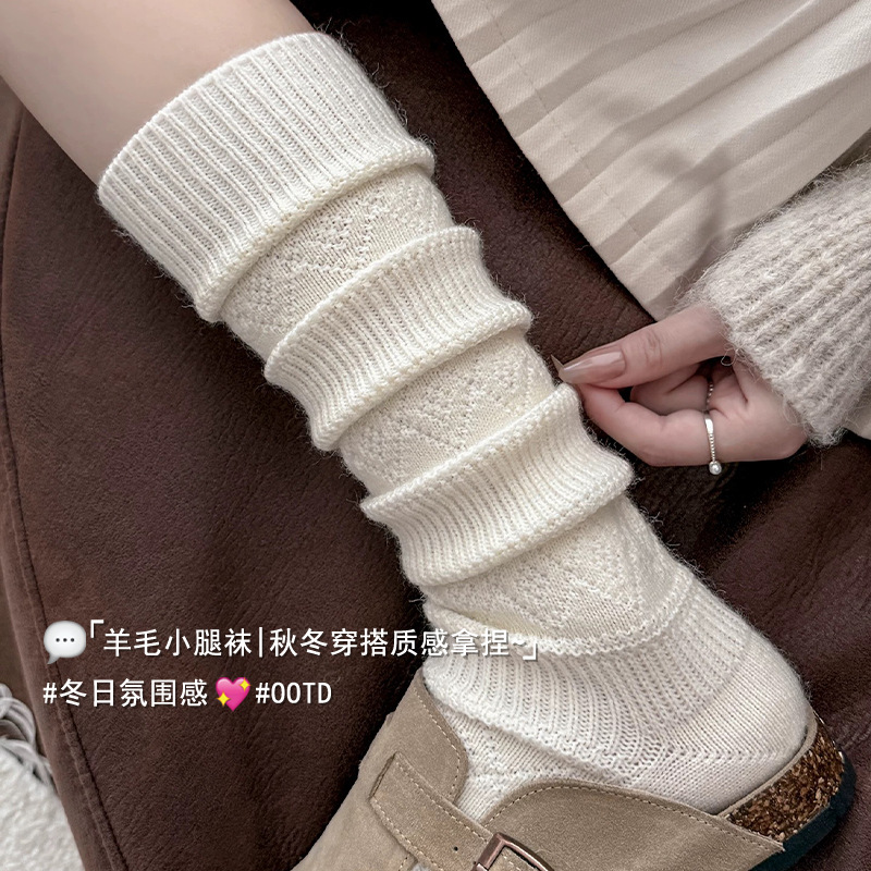 小腿袜子女秋冬堆堆袜加厚保暖羊毛针织长袜菱格腿套袜诸暨女袜