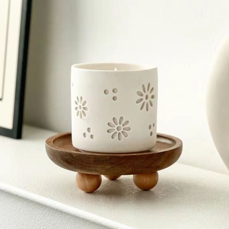 創意木トレー円形楕円香薫置物トレー木製トレーケーキ皿木製食器