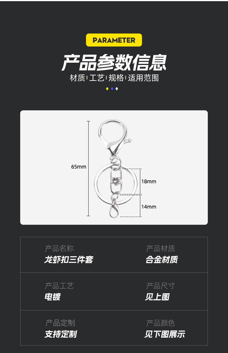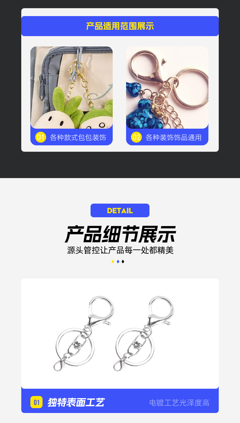 钥匙圈四节链挂三件套diy饰品配件手工材料30mm龙虾扣8字转钥匙扣