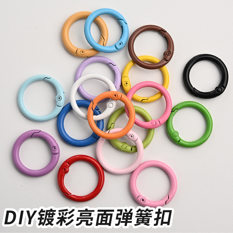 彩色烤漆锌合金弹簧圈DIY饰品配件小圆挂扣钥匙扣配件彩色弹簧扣