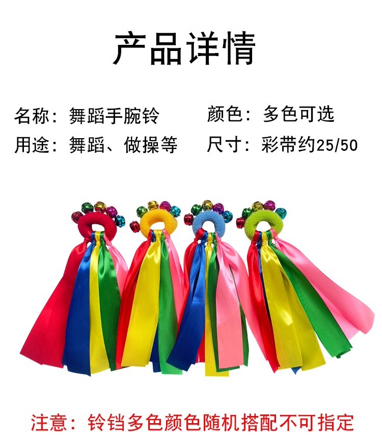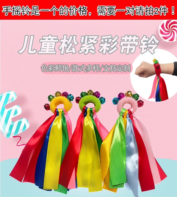 儿童彩带铃铛幼儿园早操手腕铃松紧圈环绳舞蹈表演运动会入场道具