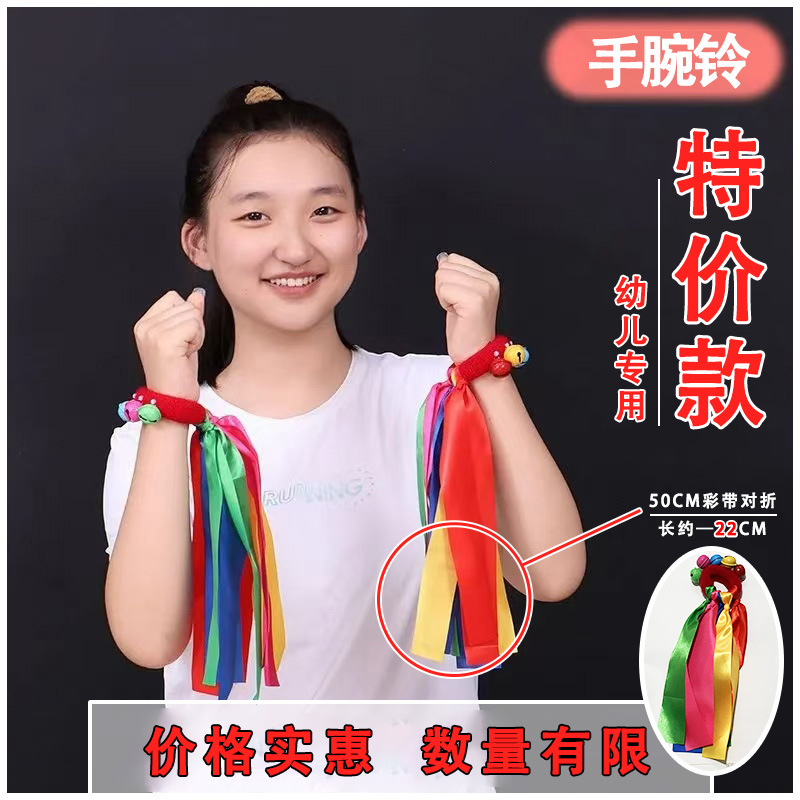 儿童手腕彩带铃铛运动会入场表演早操轻器械松紧绳圈摇铃舞蹈道具