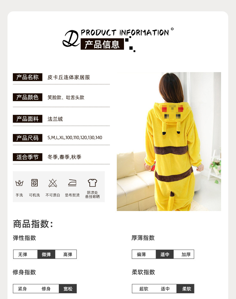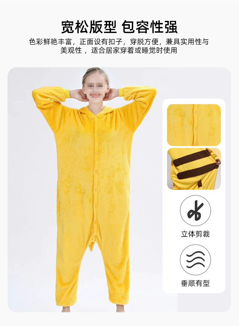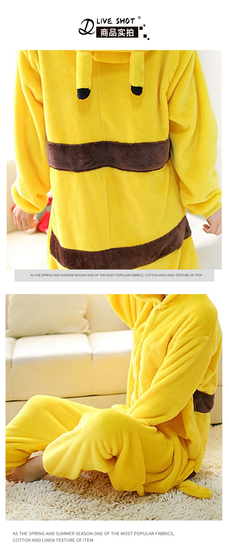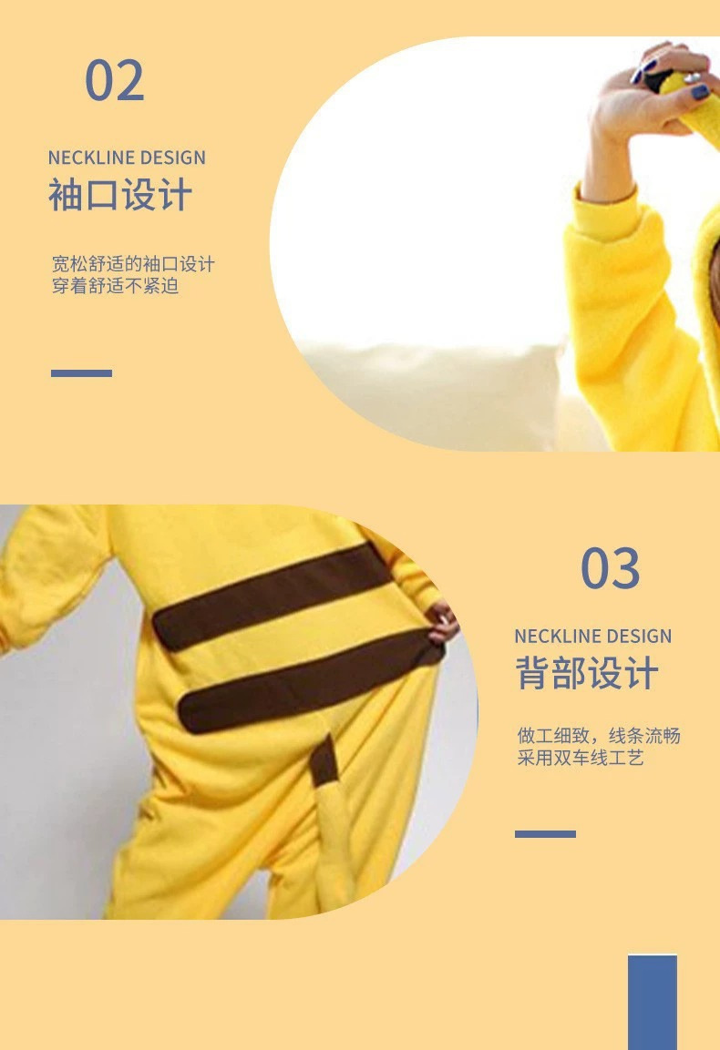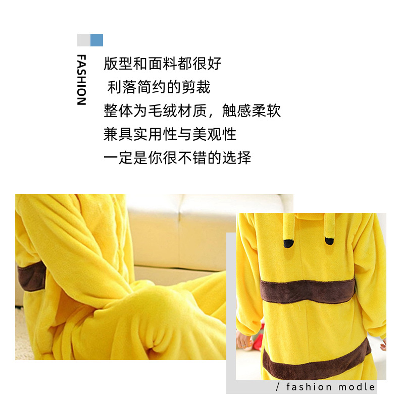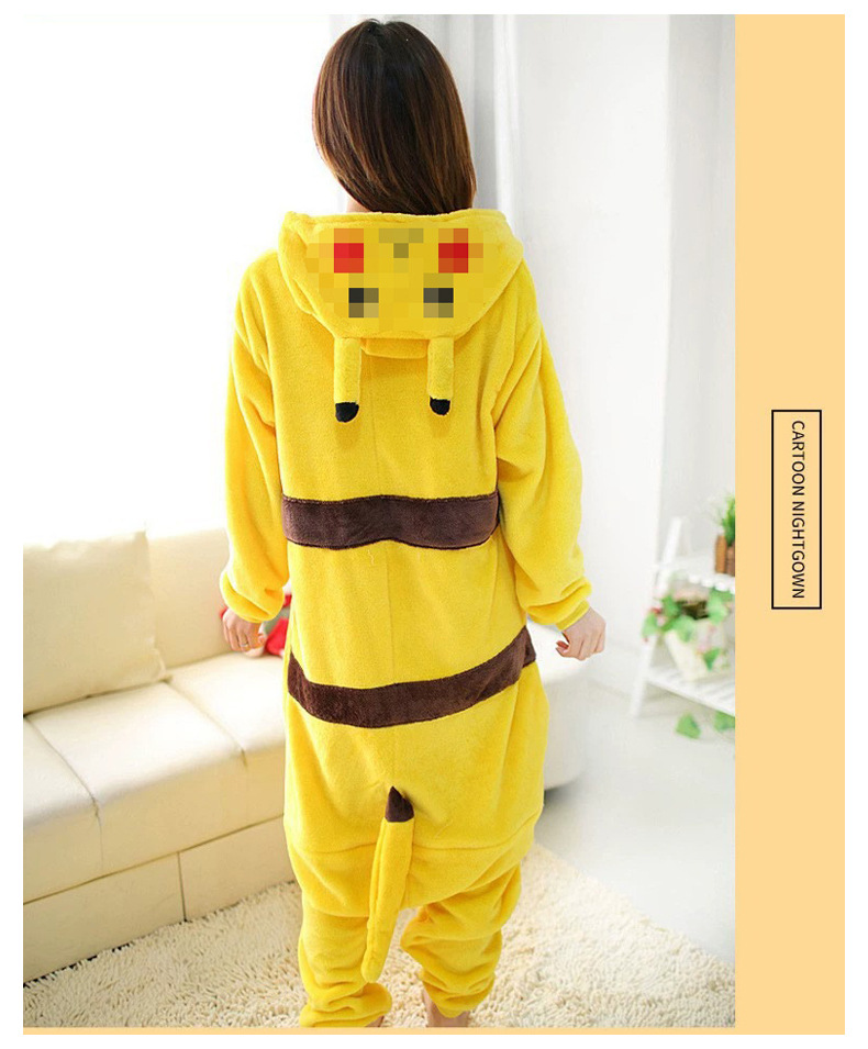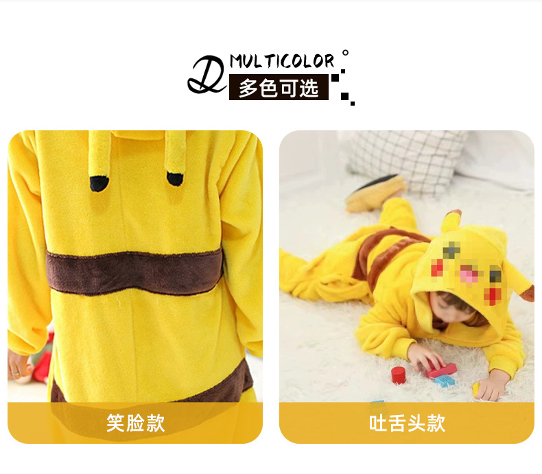 国境を越えたフランネル素材のホームウェアセット、子供用動物漫画柄パジャマ、暖かいピカチュウ長袖ワンピース、厚手