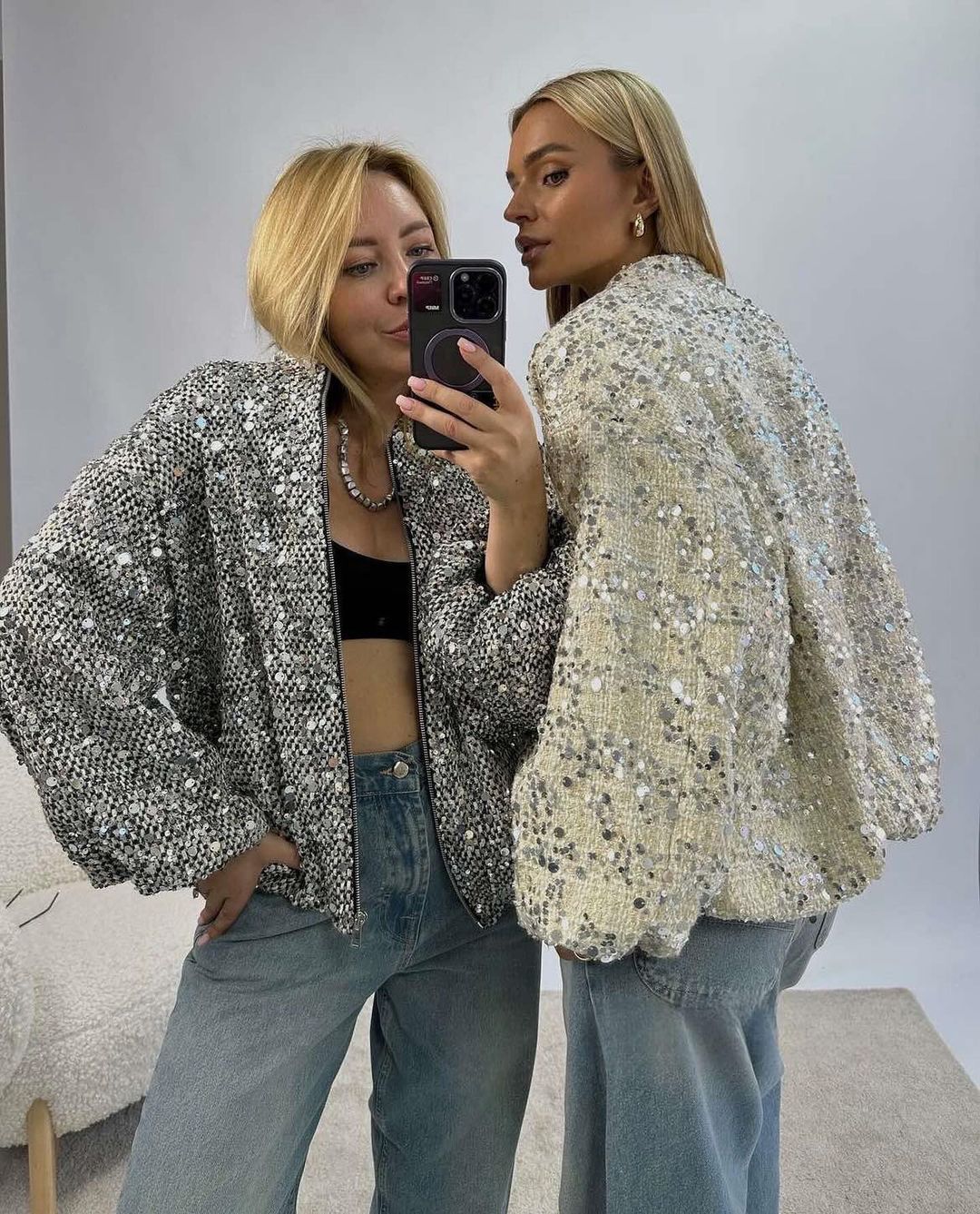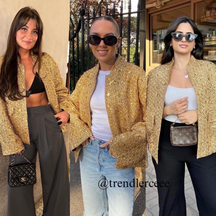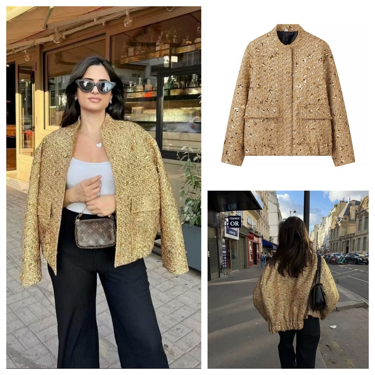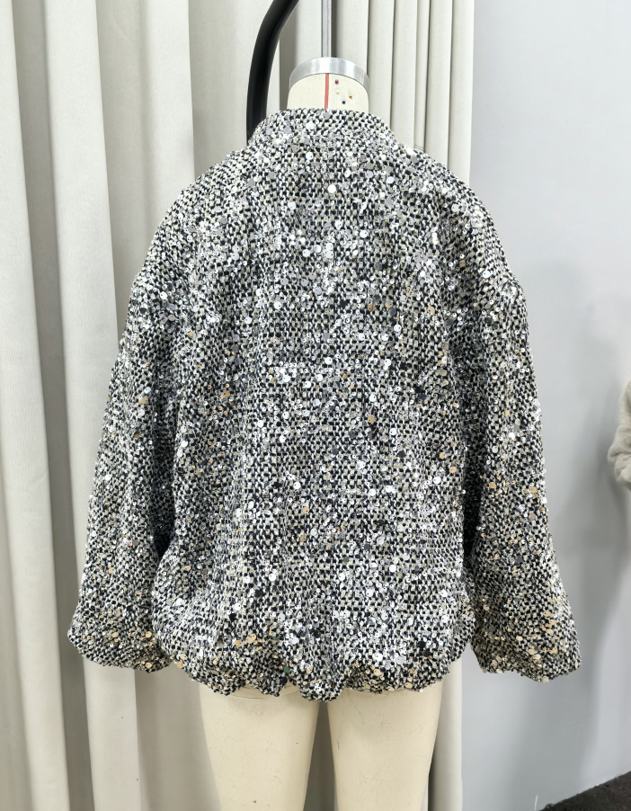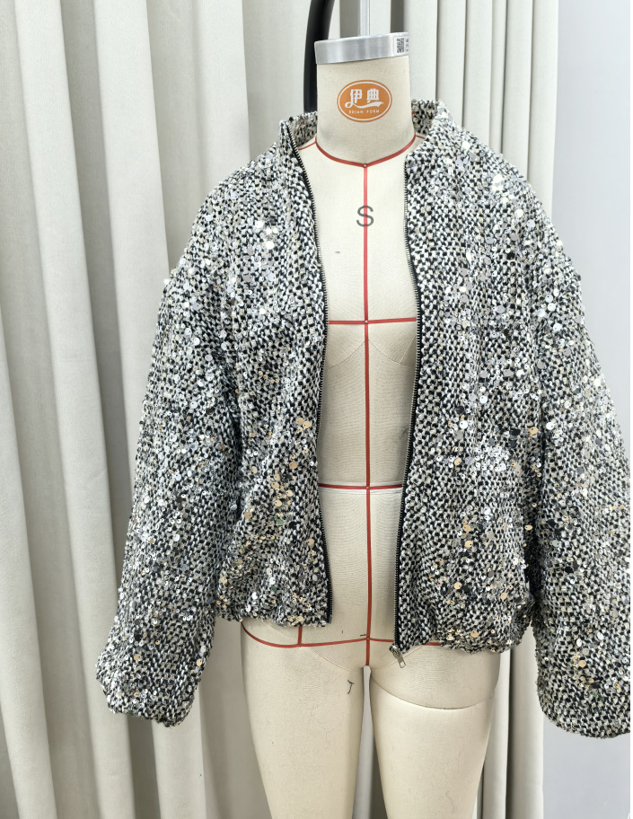 実写-ゆるいレトロなスパンコールジャケット2025春ファスナー長袖コート欧米国境を越えた起爆金
