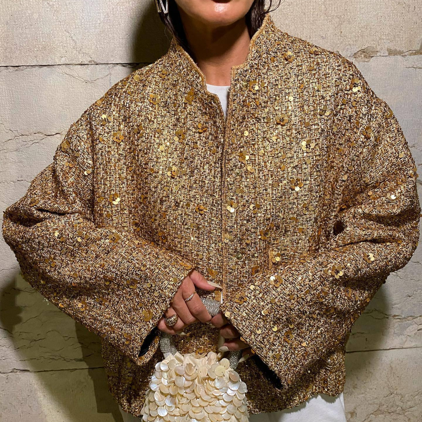 跨境金丝珠片夹克欧美2025新款INS新款时尚亮片立领宽松夹克外套