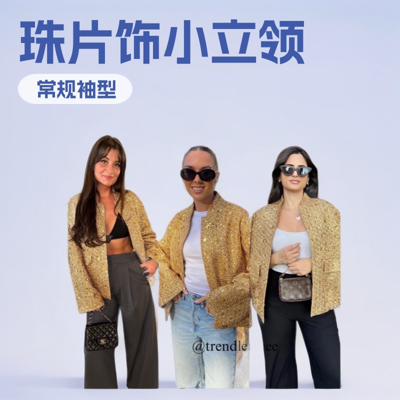 ザクロスボーダー女装卸売欧米風秋新作立襟スパンコールゆったりカジュアルファッションコンビネーションジャケット