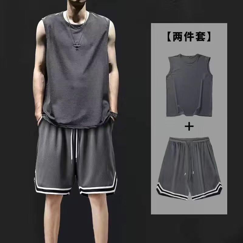 男子バスケットボール服夏の氷糸薄手速乾青少年ベストパンツ痞帅ファッションレジャースポーツスーツ
