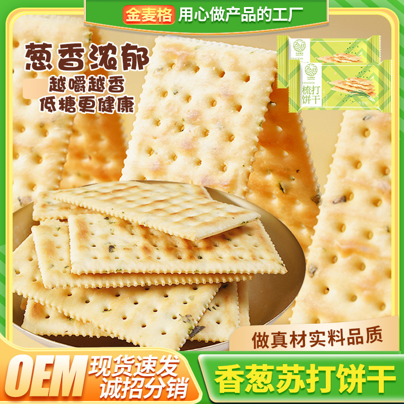 无蔗糖香葱苏打饼干早餐咸味葱花饼干办公室零食代餐点心批发包邮