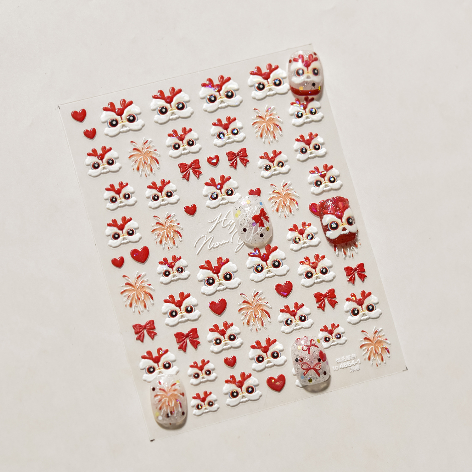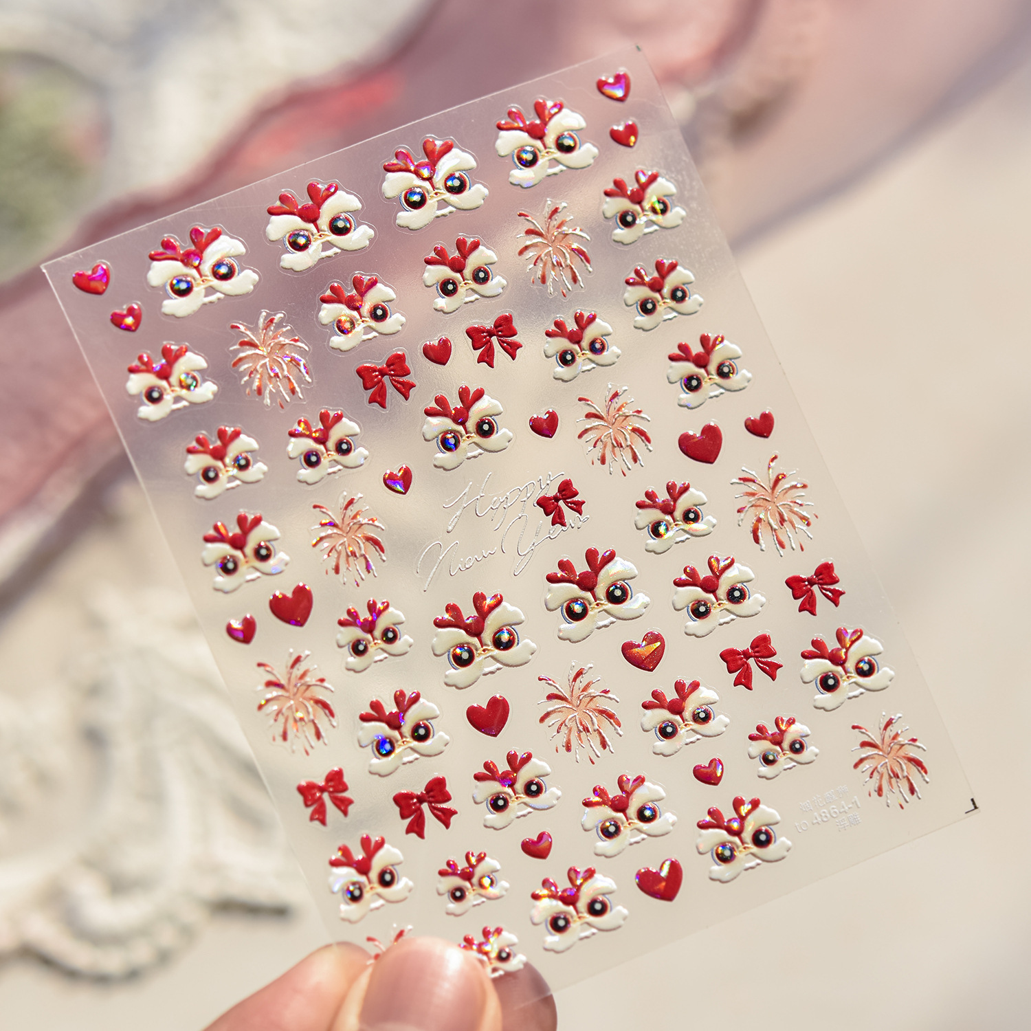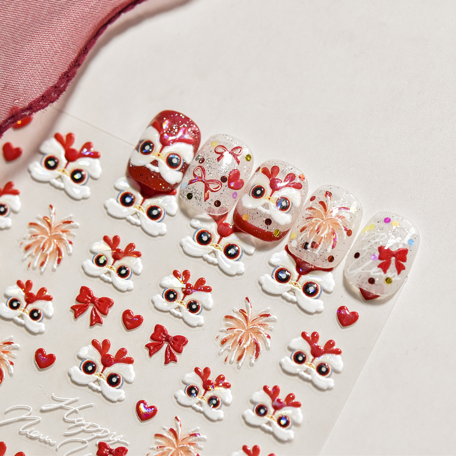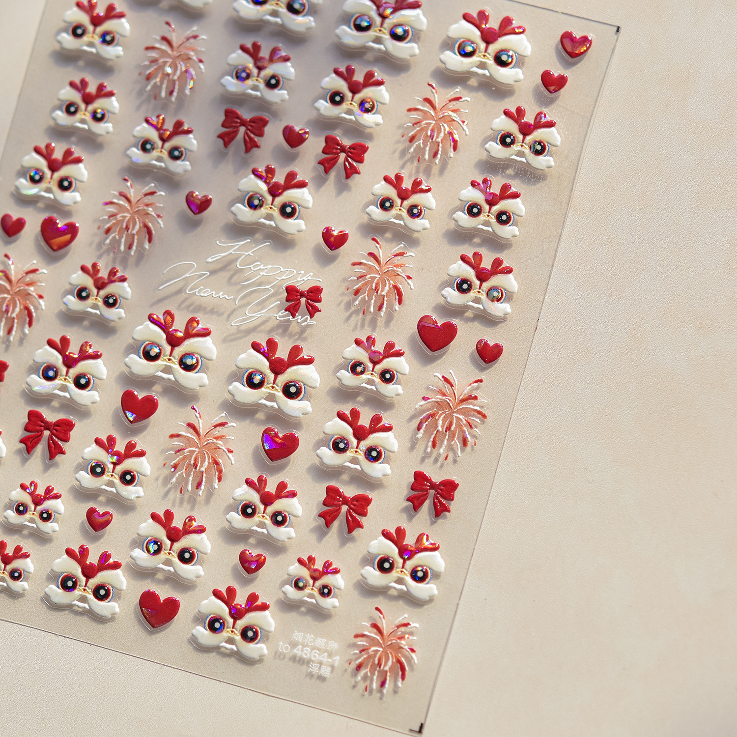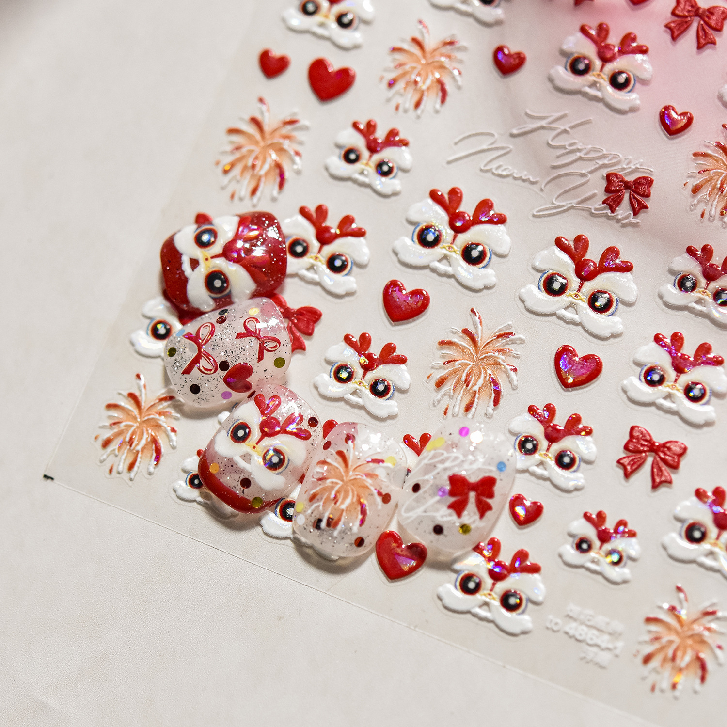 tomoni浮雕美甲贴纸 爆款喜庆指甲贴新中式马年醒狮贴纸饰品素材