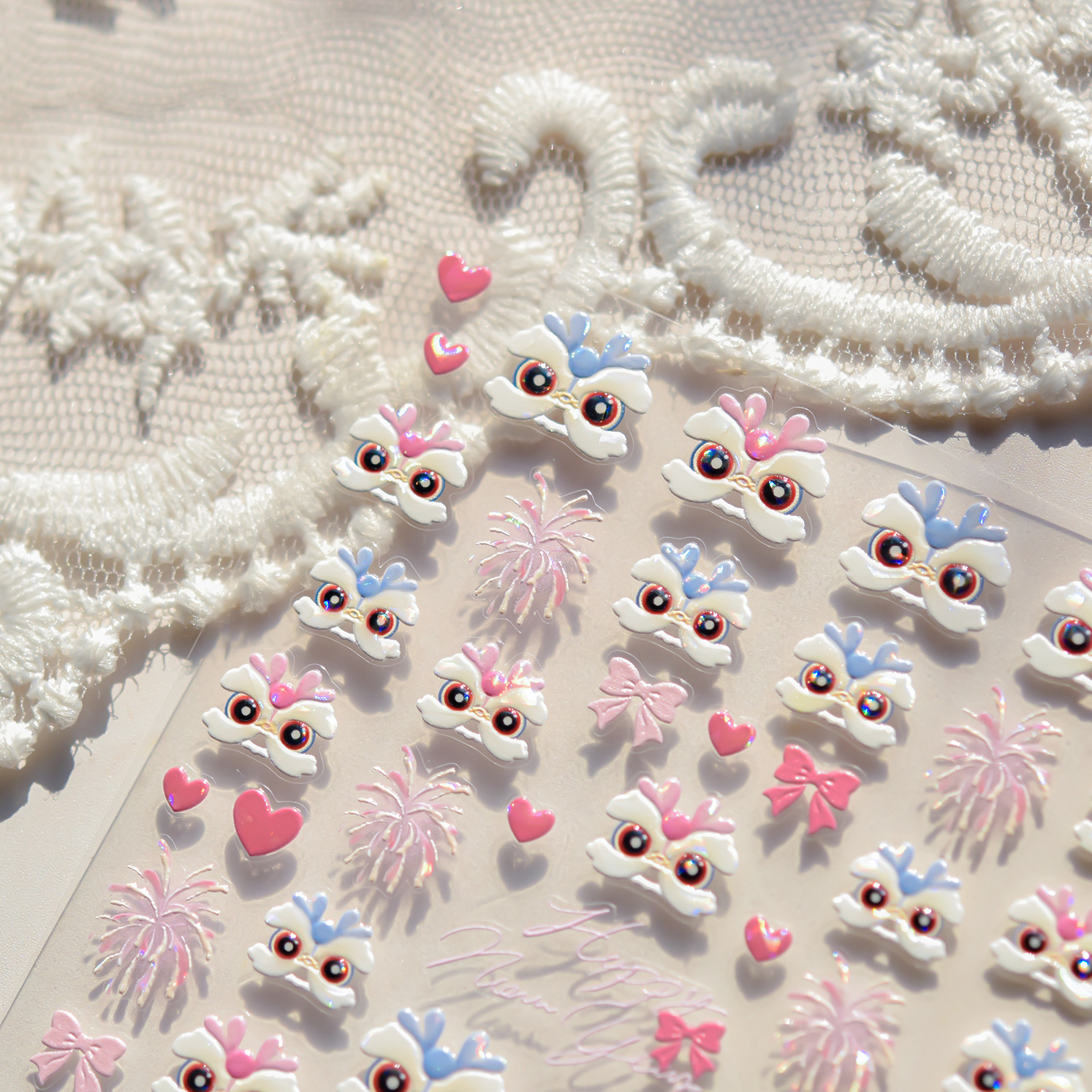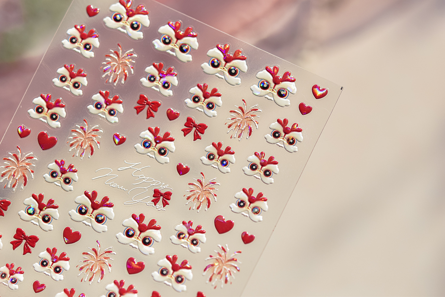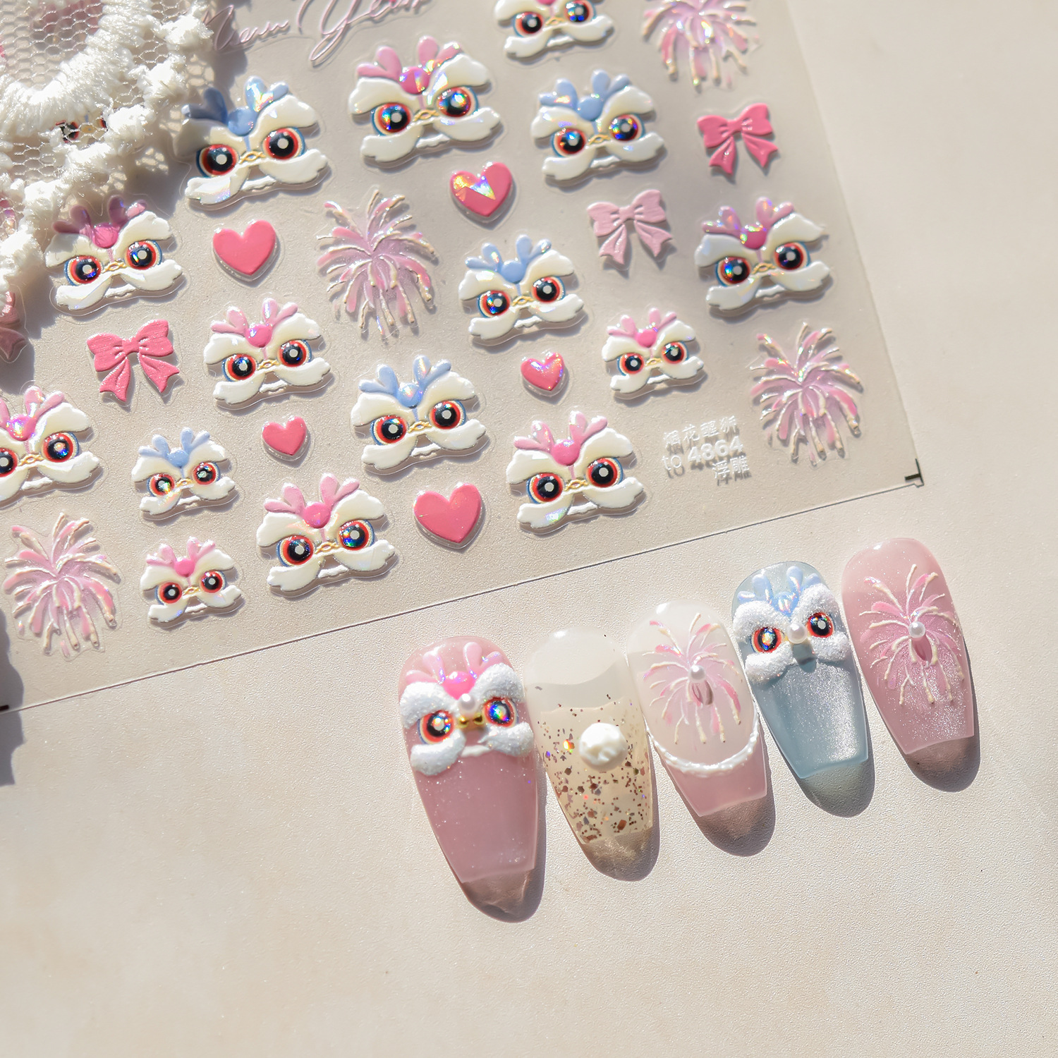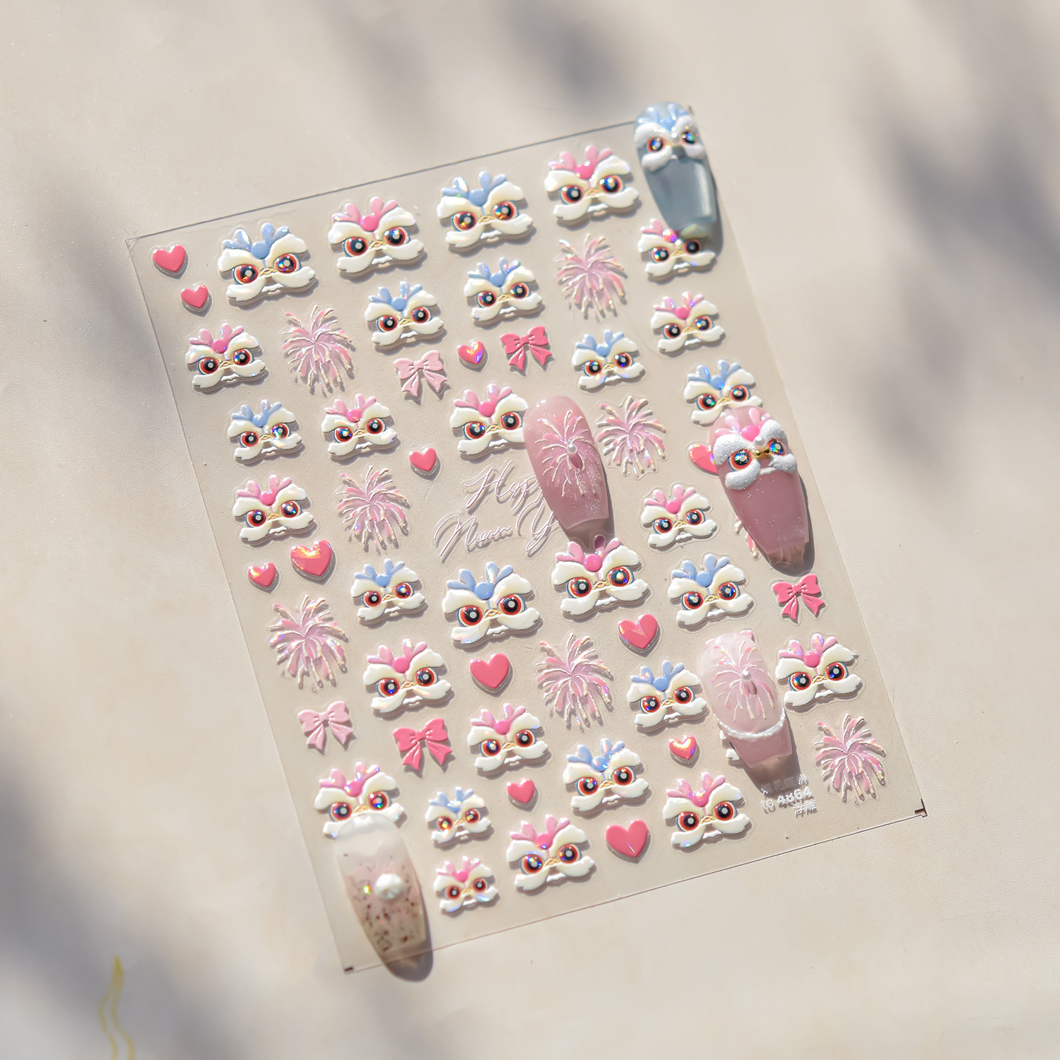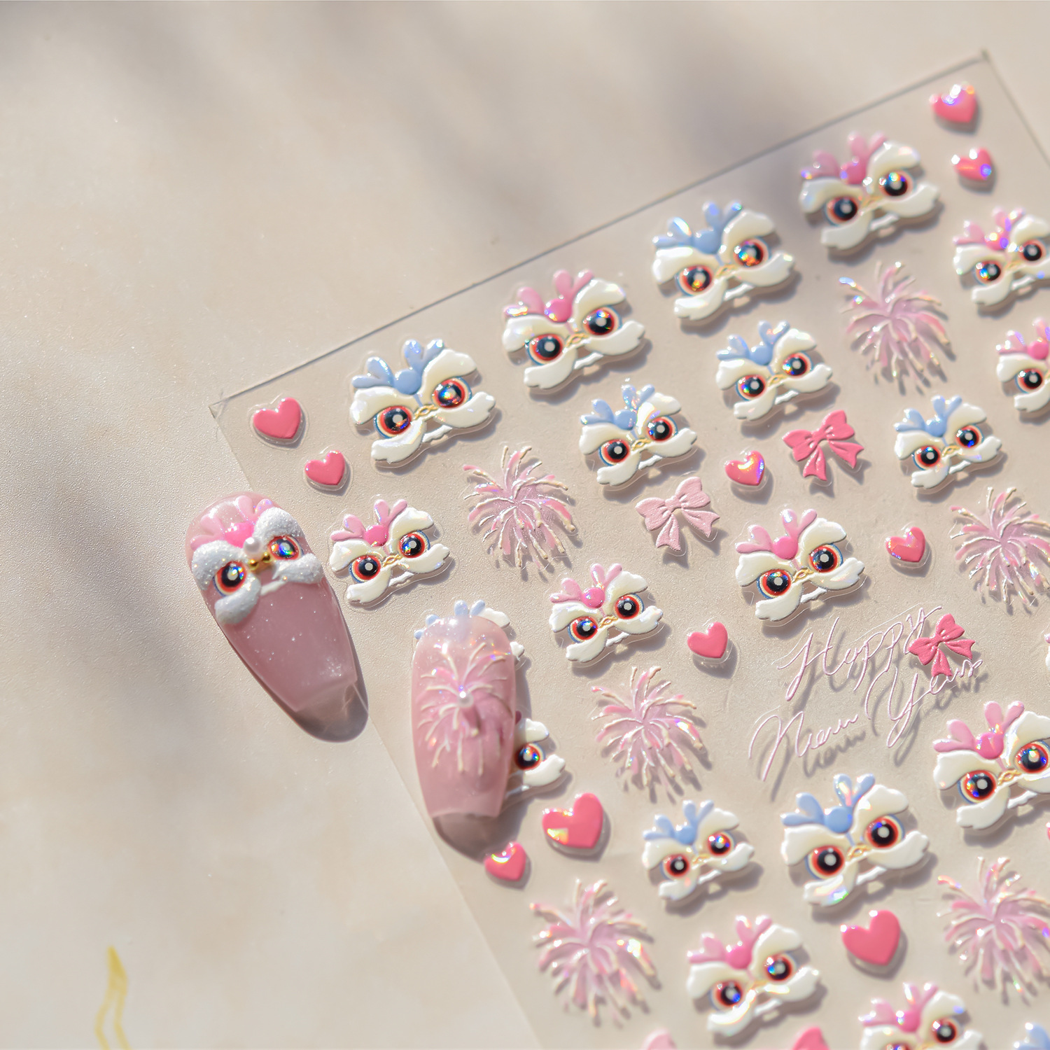 tomoni浮雕美甲贴纸 爆款喜庆指甲贴新中式马年醒狮贴纸饰品素材