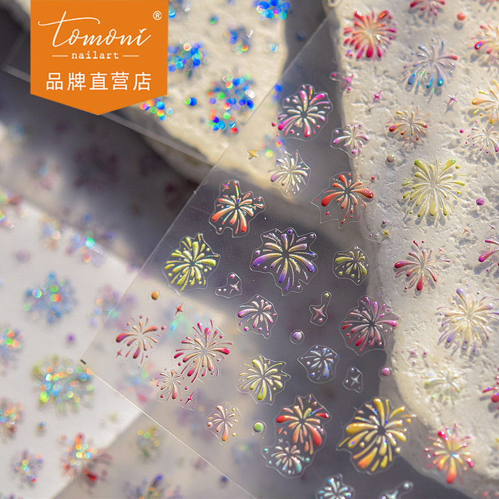 tomoni闪粉美甲贴纸 爆款新中式指甲贴新年烟火灿烂美甲贴纸混款